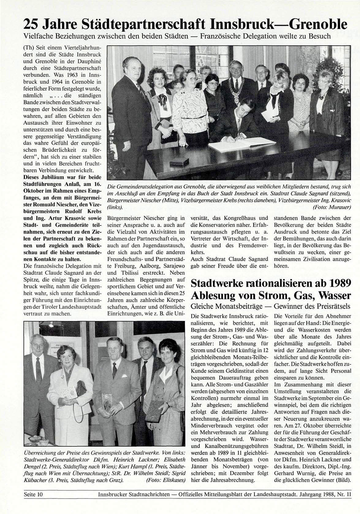 Innsbrucker Stadtnachrichten — Offizielles Mitteilungsblatt der Landeshauptstadt. Jahrgang 1988, Nr. 11