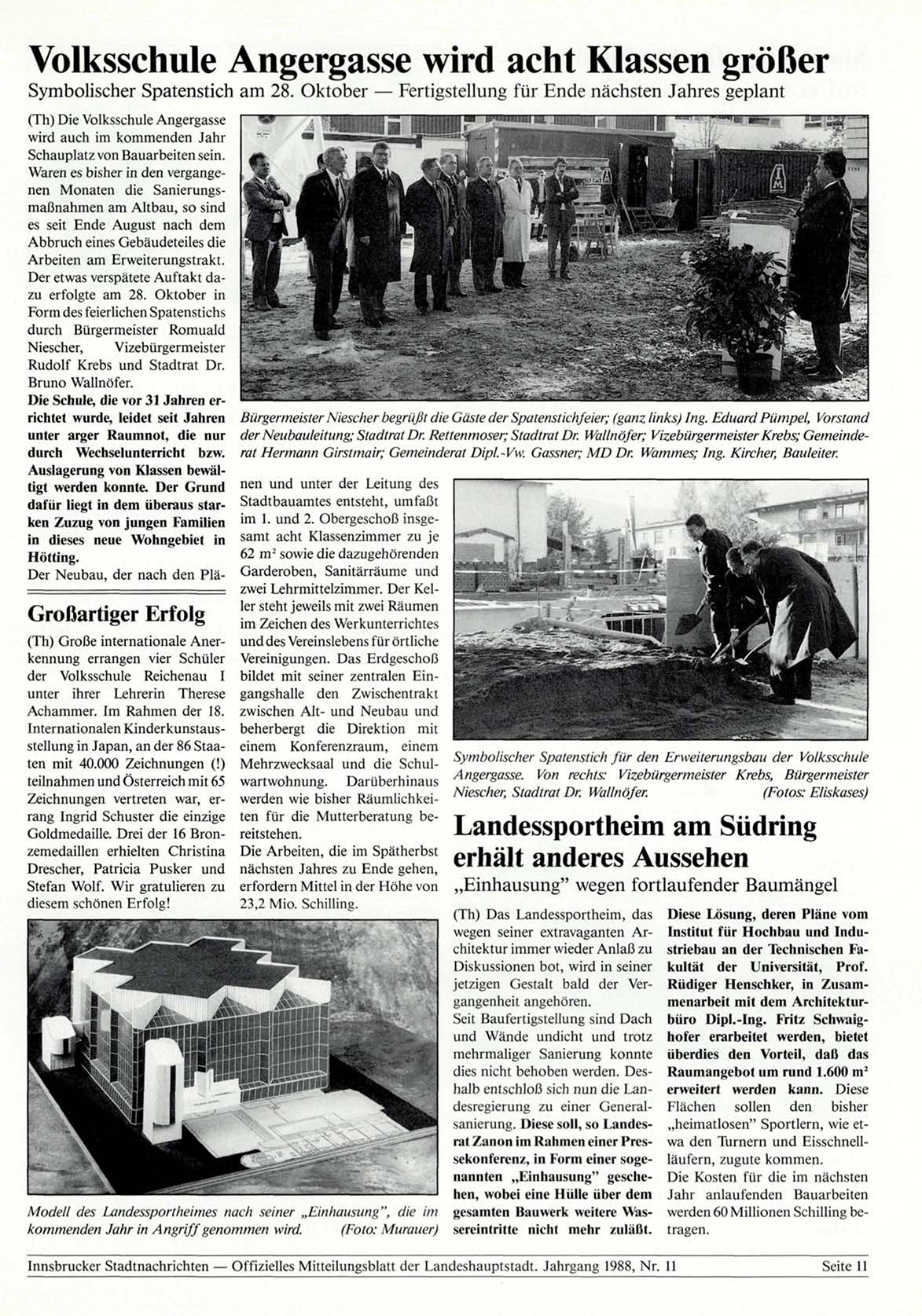 Innsbrucker Stadtnachrichten — Offizielles Mitteilungsblatt der Landeshauptstadt. Jahrgang 1988, Nr. 11