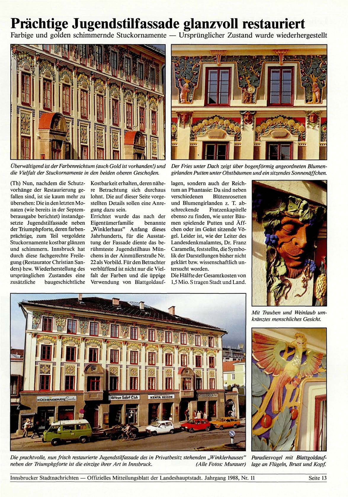 Die prachtvolle, nun frisch restaurierte Jugendstilfassade des in Privatbesitz stehenden „Winklerhauses"