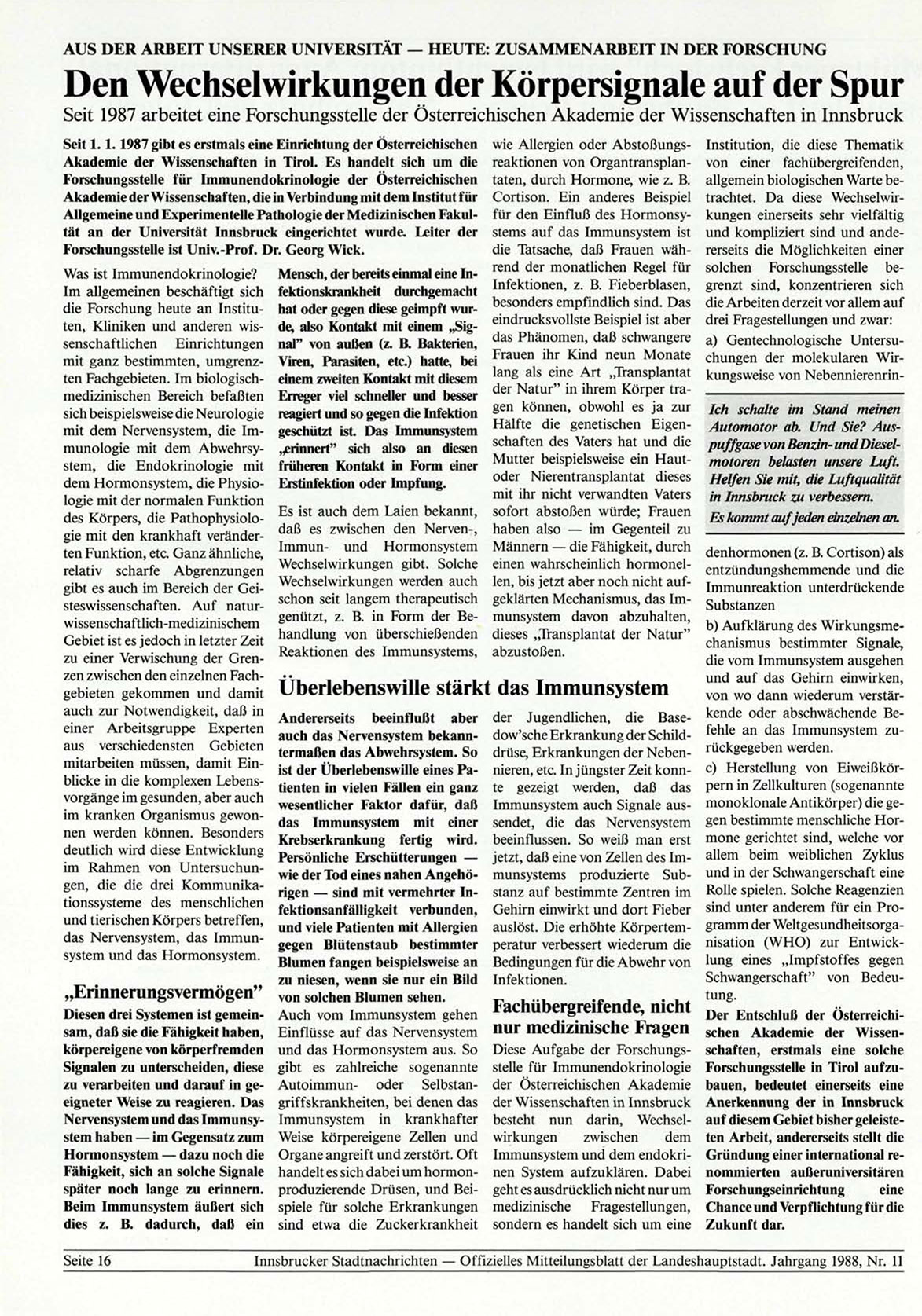 Forschungsstelle ist Univ.-Prof. Dr. Georg Wick.