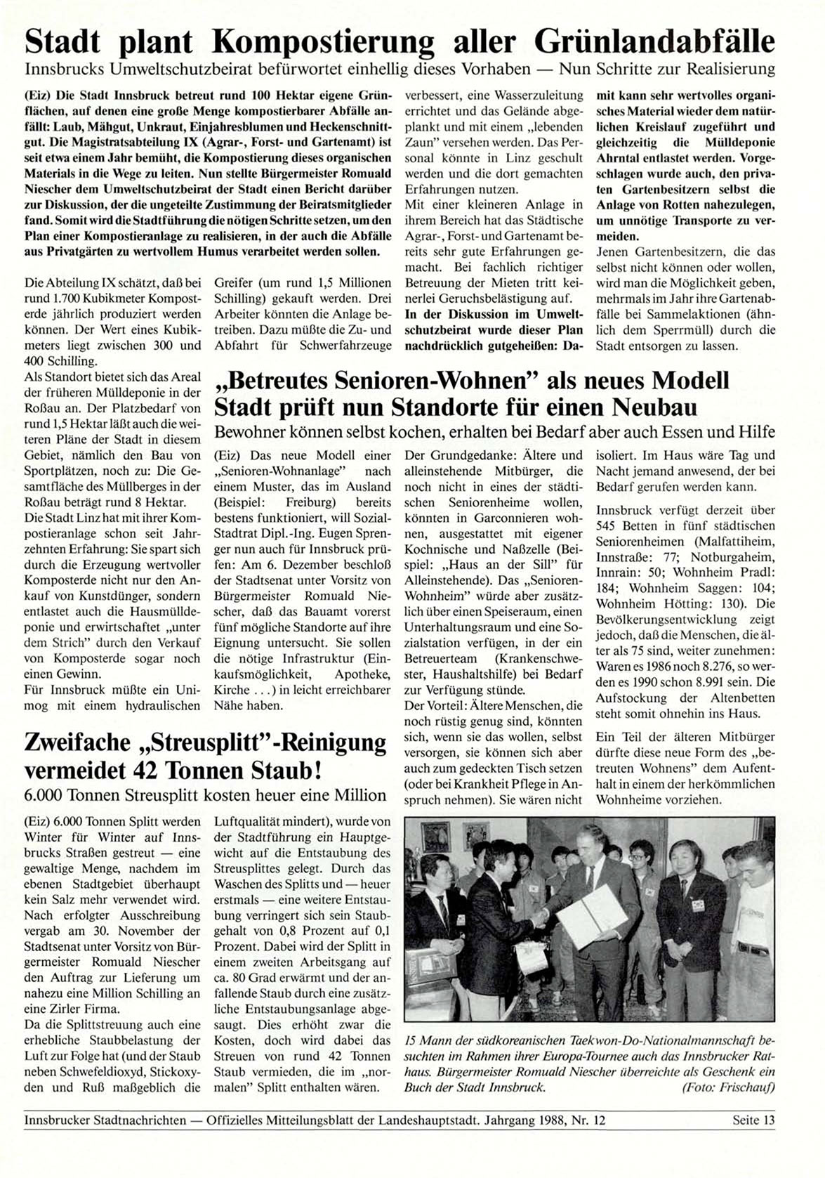 Innsbrucker Stadtnachrichten — Offizielles Mitteilungsblatt der Landeshauptstadt. Jahrgang 1988, Nr. 12