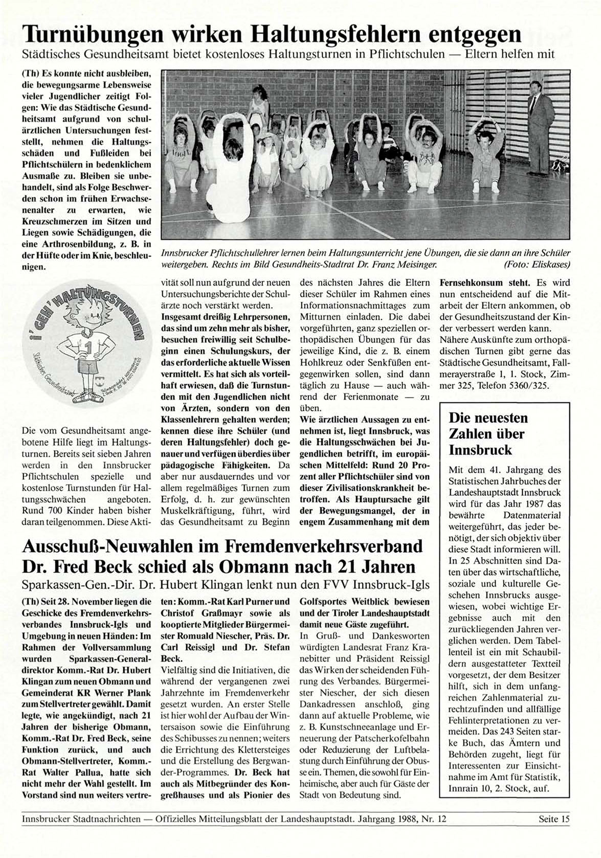 Innsbrucker Stadtnachrichten — Offizielles Mitteilungsblatt der Landeshauptstadt. Jahrgang 1988, Nr. 12