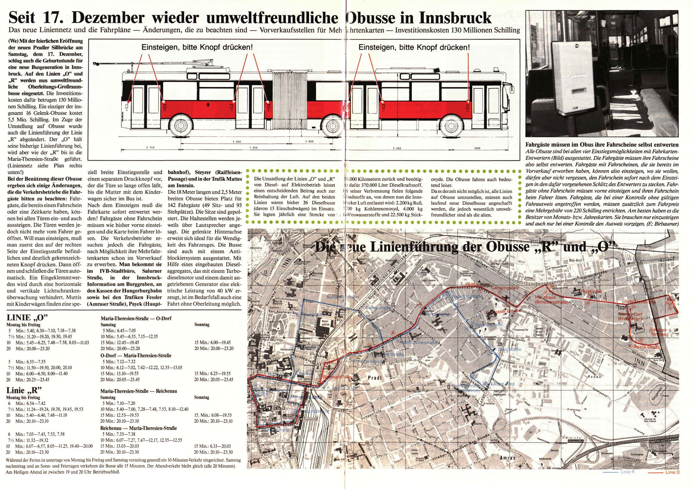 Seit 17. Dezember wieder umweltfreundliche Obusse in Innsbruck
