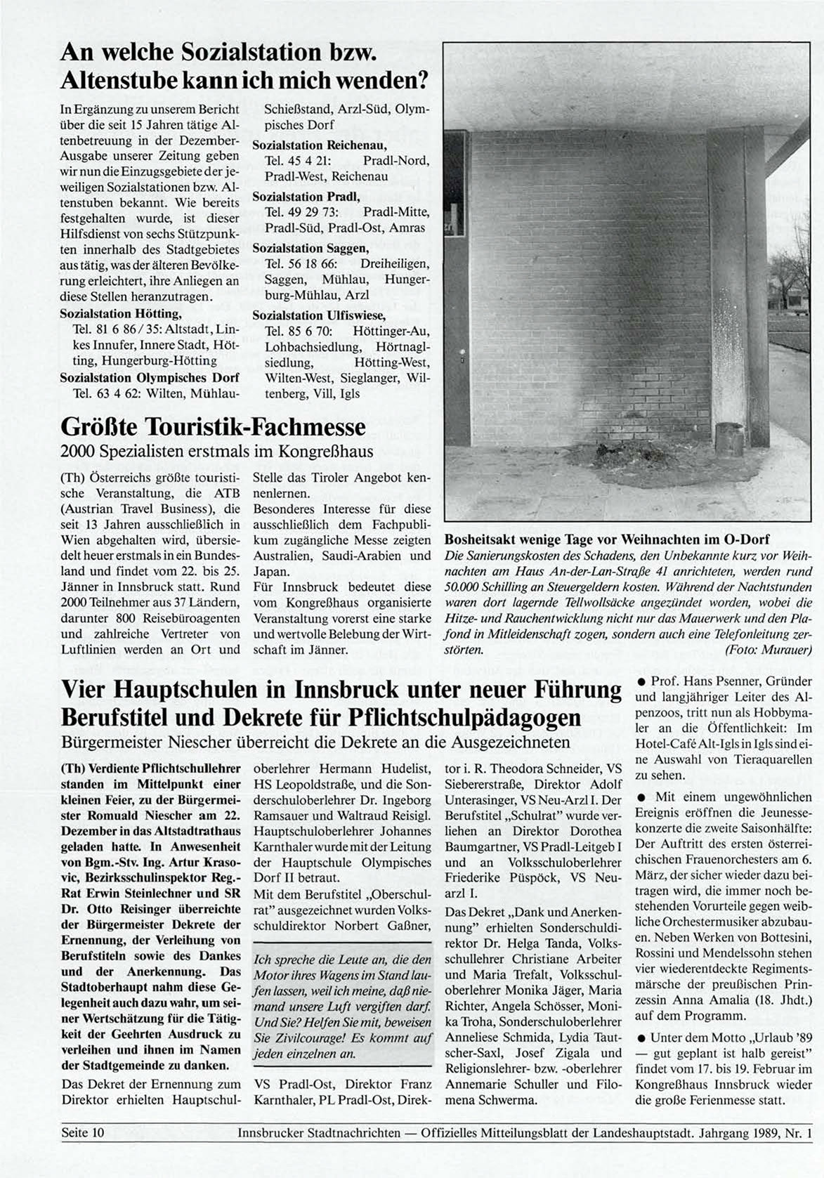 Innsbrucker Stadtnachrichten — Offizielles Mitteilungsblatt der Landeshauptstadt. Jahrgang 1989, Nr. 1