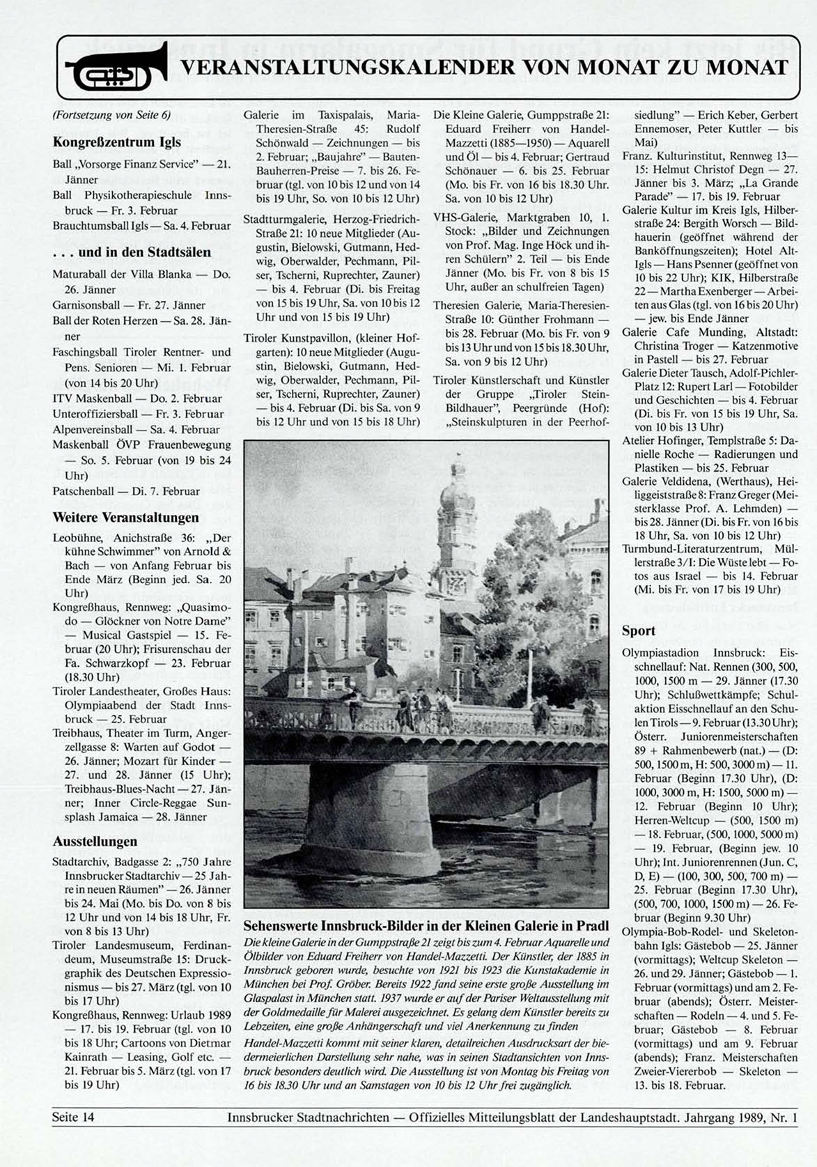 Innsbrucker Stadtnachrichten — Offizielles Mitteilungsblatt der Landeshauptstadt. Jahrgang 1989, Nr. 1