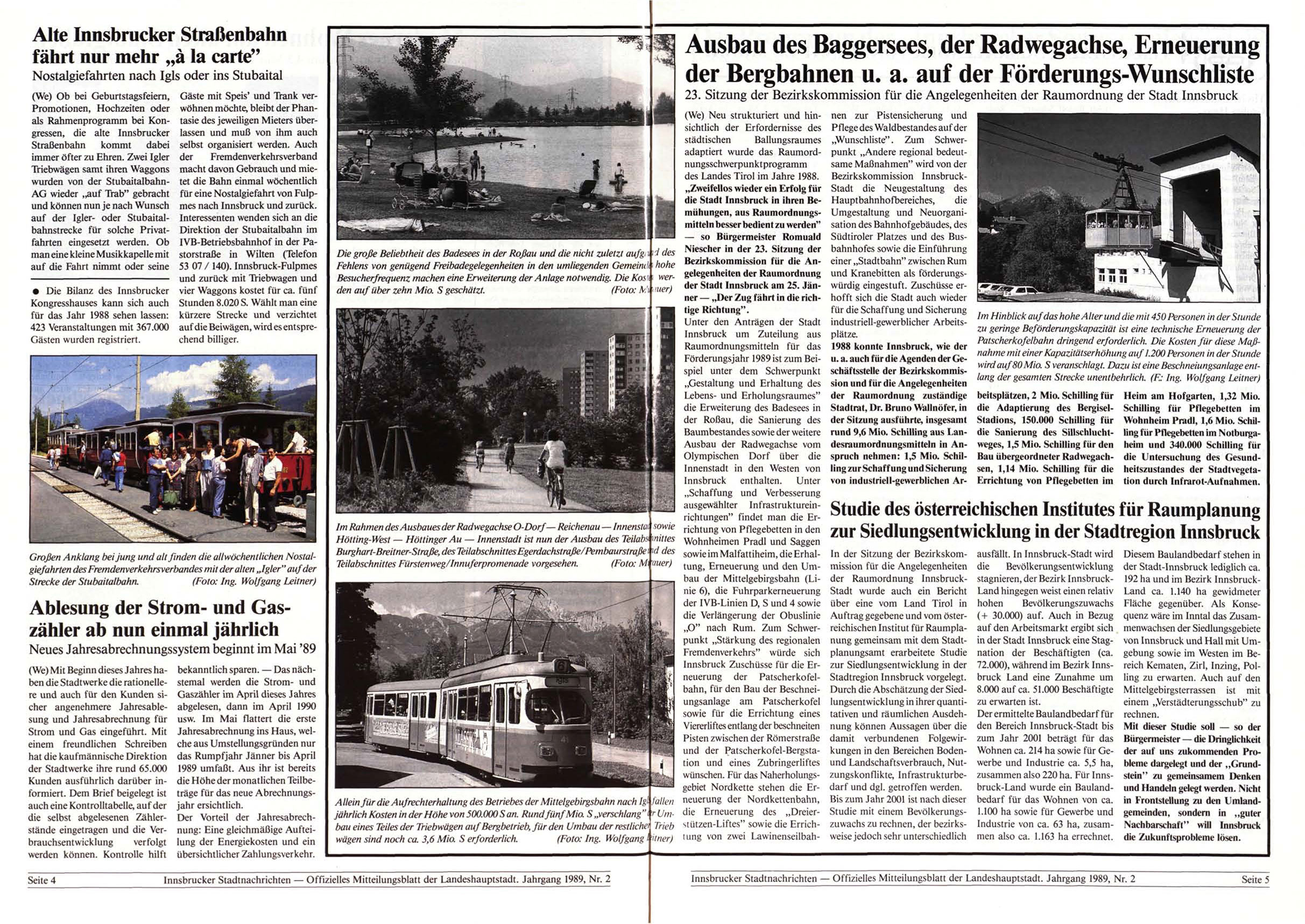 Innsbrucker Stadtnachrichten — Offizielles Mitteilungsblatt der Landeshauptstadt. Jahrgang 1989, Nr. 2