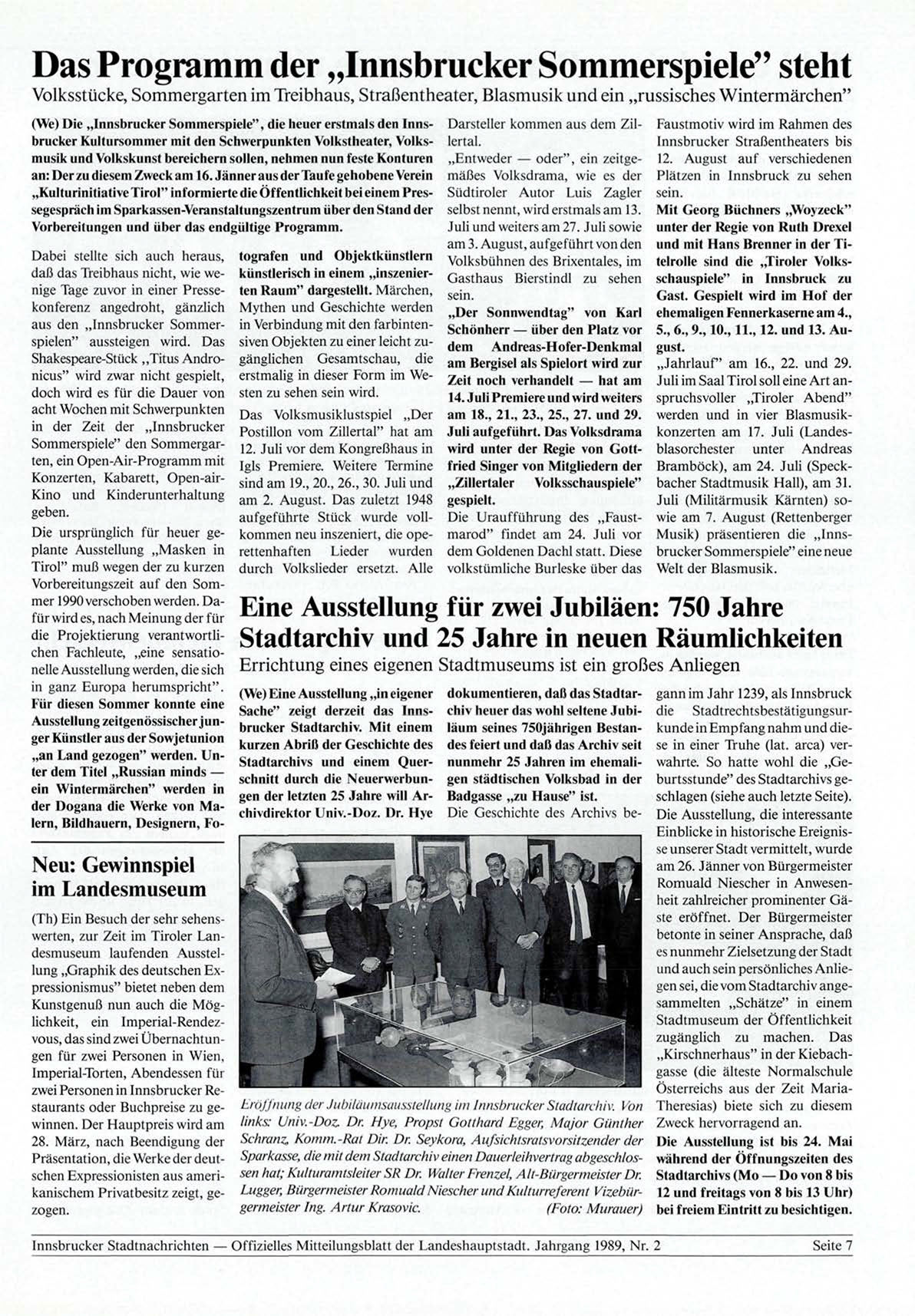 Innsbrucker Stadtnachrichten — Offizielles Mitteilungsblatt der Landeshauptstadt. Jahrgang 1989, Nr. 2