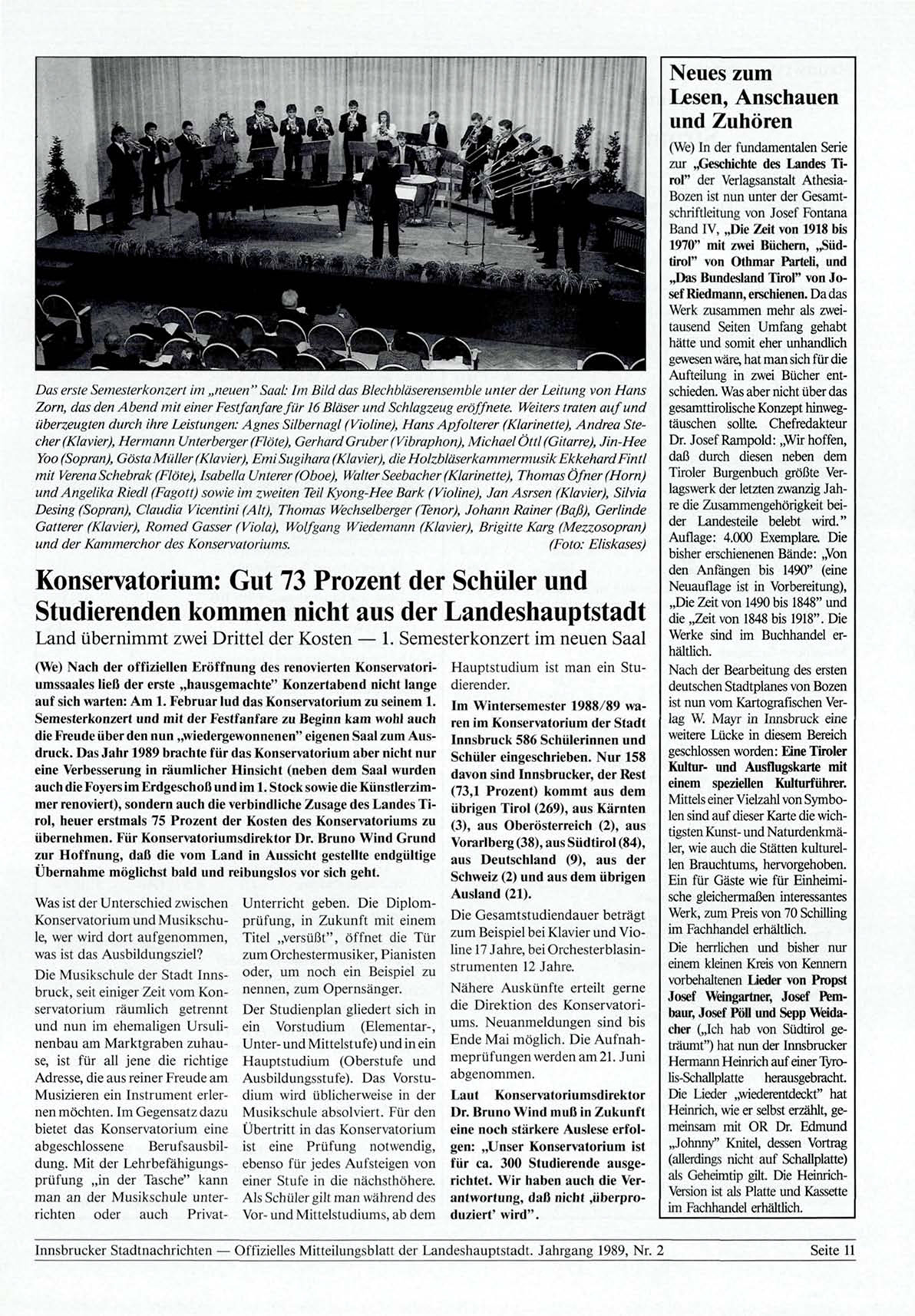 Innsbrucker Stadtnachrichten — Offizielles Mitteilungsblatt der Landeshauptstadt. Jahrgang 1989, Nr. 2