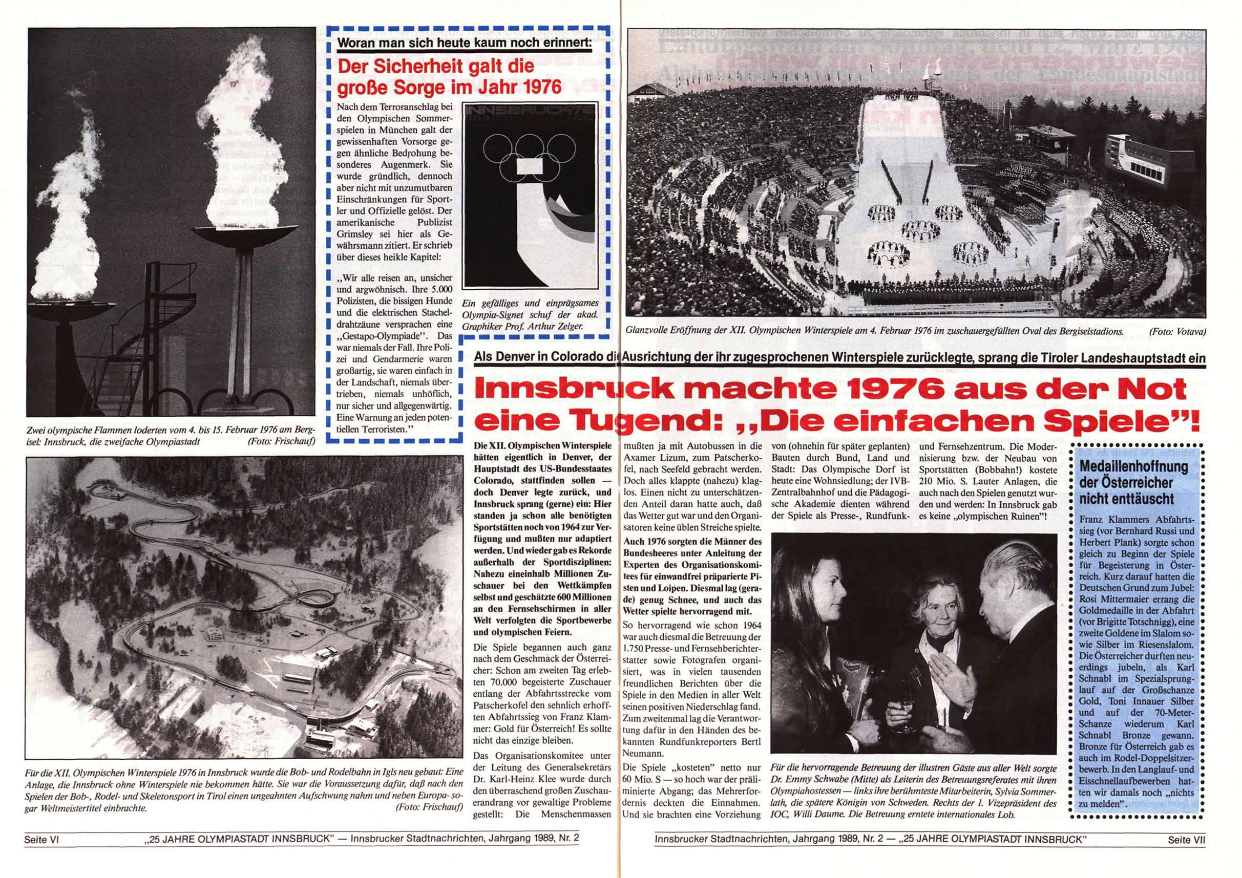 „25 JAHRE OLYMPIASTADT INNSBRUCK" — Innsbrucker Stadtnachrichten, Jahrgang 1989, Nr. 2