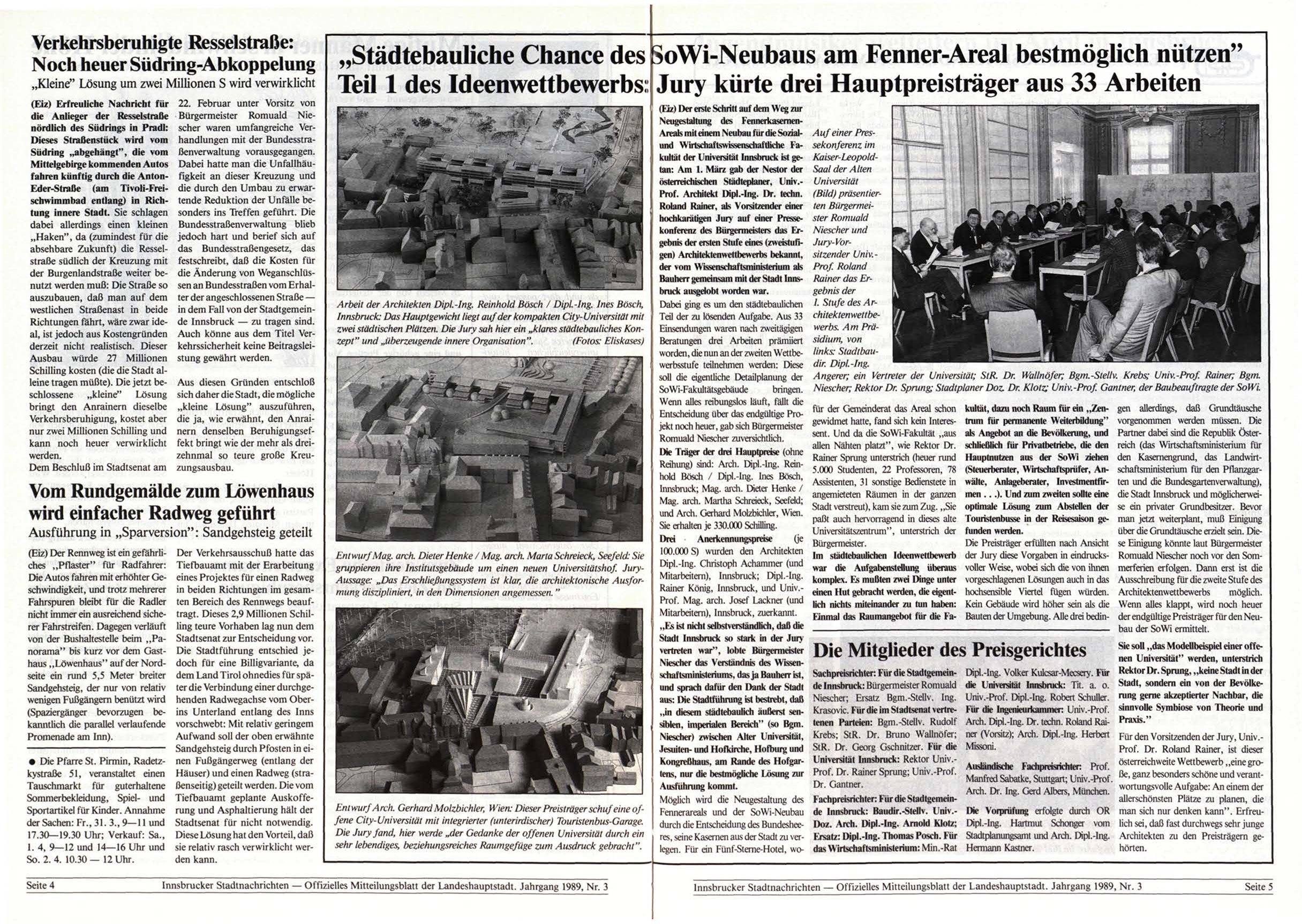 Fachpreisrichter: Für die Stadtgemeinde Innsbruck: Baudir.-Stellv. Univ.Doz. Arch. Dipl.-Ing. Arnold Klotz;