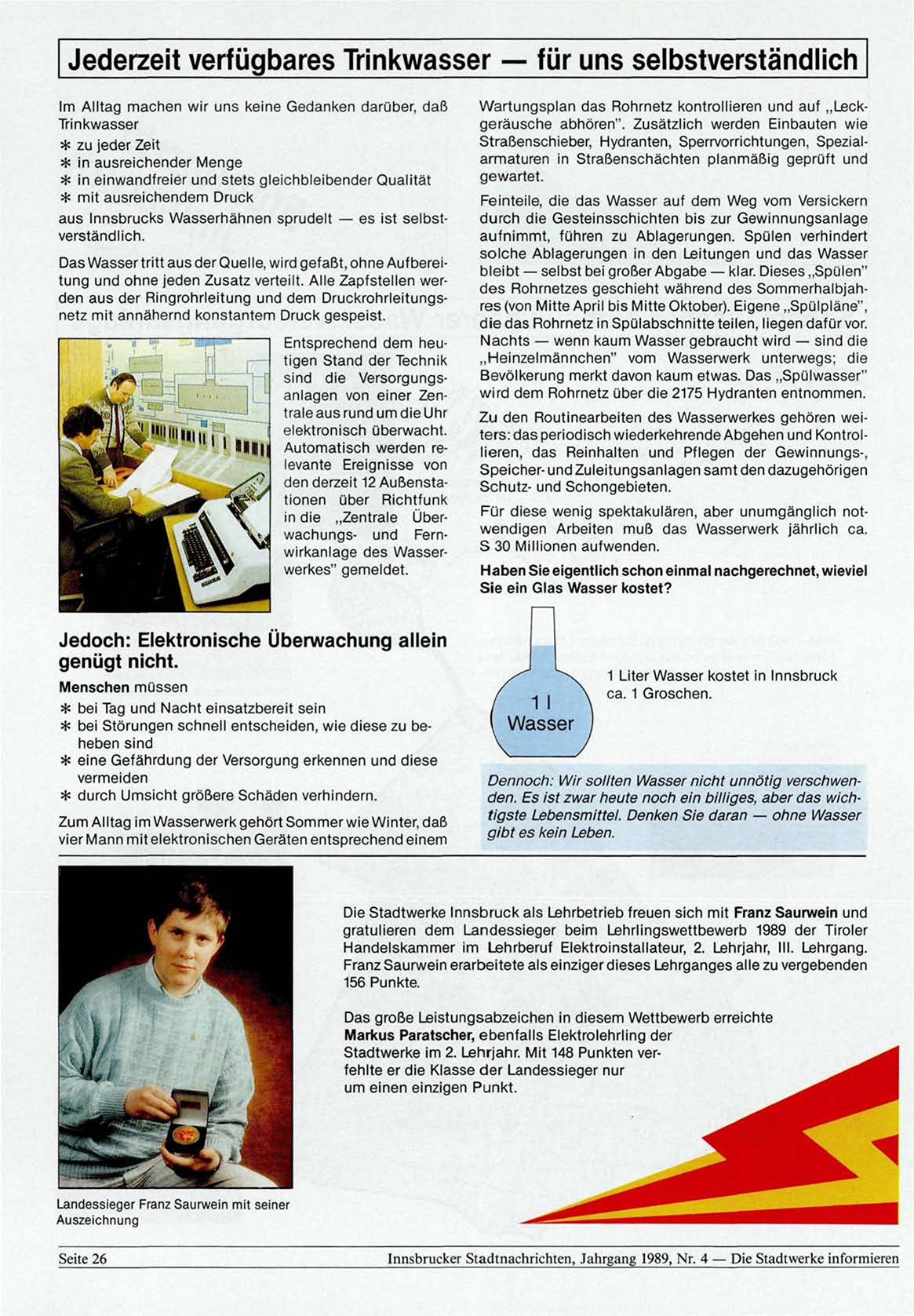 Innsbrucker Stadtnachrichten, Jahrgang 1989, Nr. 4 — Die Stadtwerke informieren