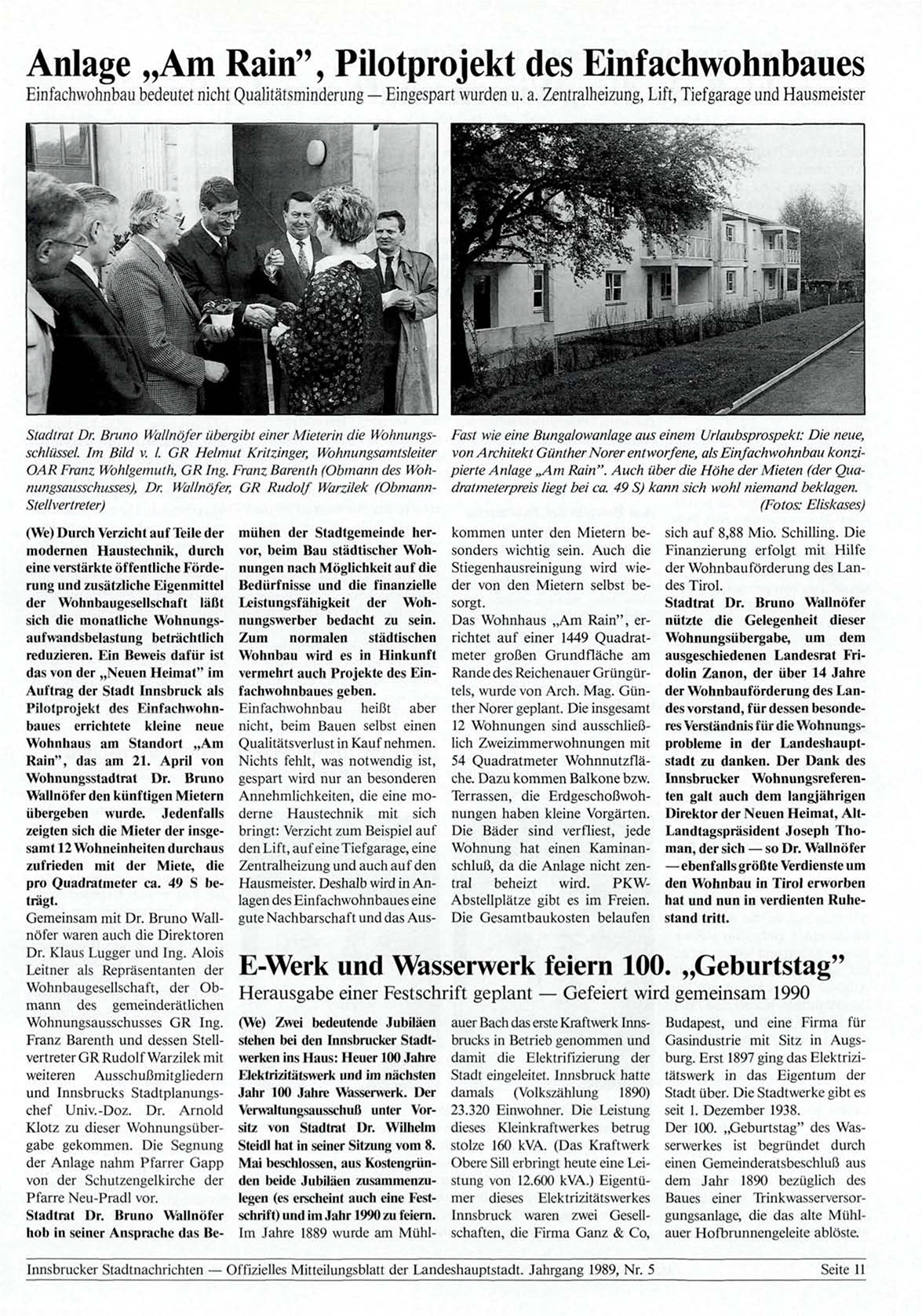 Innsbrucker Stadtnachrichten — Offizielles Mitteilungsblatt der Landeshauptstadt. Jahrgang 1989, Nr. 5