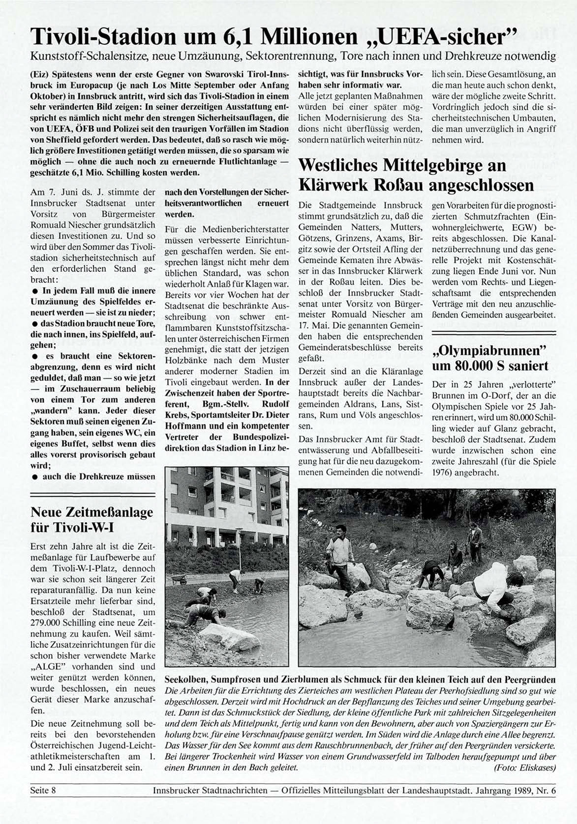 Innsbrucker Stadtnachrichten — Offizielles Mitteilungsblatt der Landeshauptstadt. Jahrgang 1989, Nr. 6