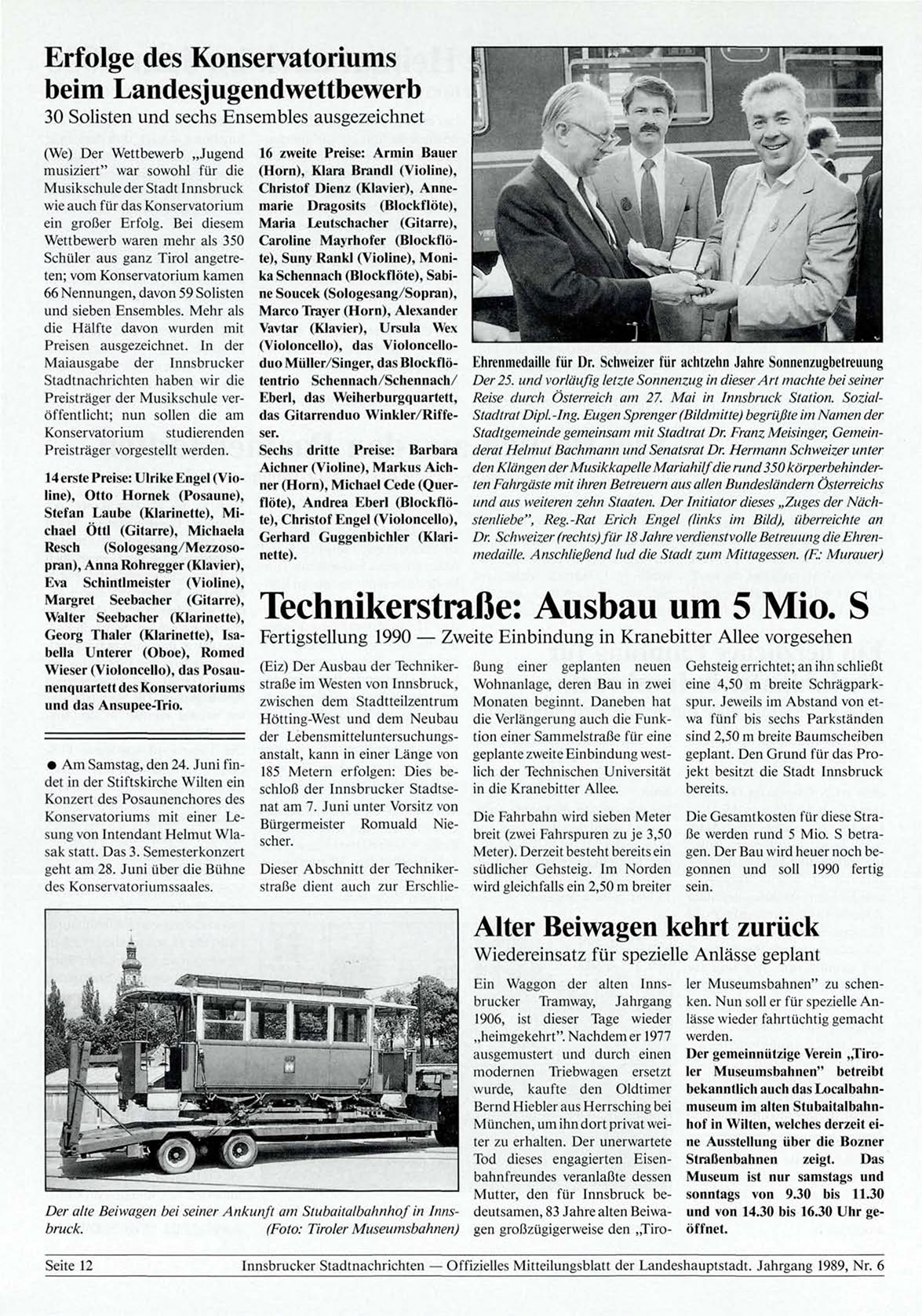Innsbrucker Stadtnachrichten — Offizielles Mitteilungsblatt der Landeshauptstadt. Jahrgang 1989, Nr. 6