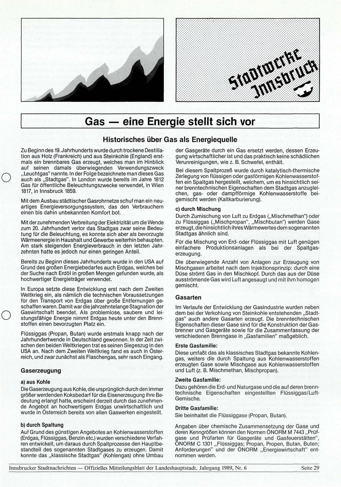 Innsbrucker Stadtnachrichten — Offizielles Mitteilungsblatt der Landeshauptstadt. Jahrgang 1989, Nr. 6