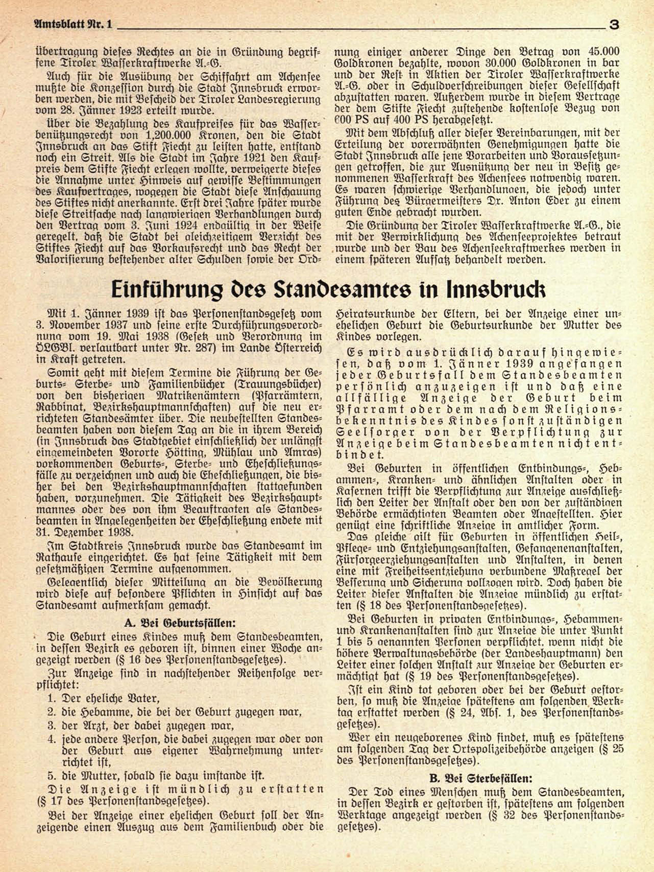 M i t 1. Jänner 1939 ist das Personenstandsgesetz vom