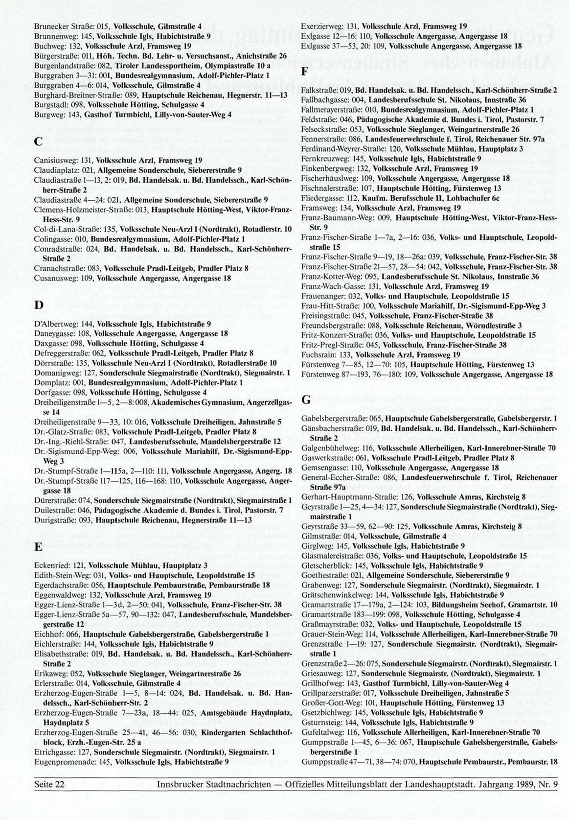 Innsbrucker Stadtnachrichten — Offizielles Mitteilungsblatt der Landeshauptstadt. Jahrgang 1989, Nr. 9