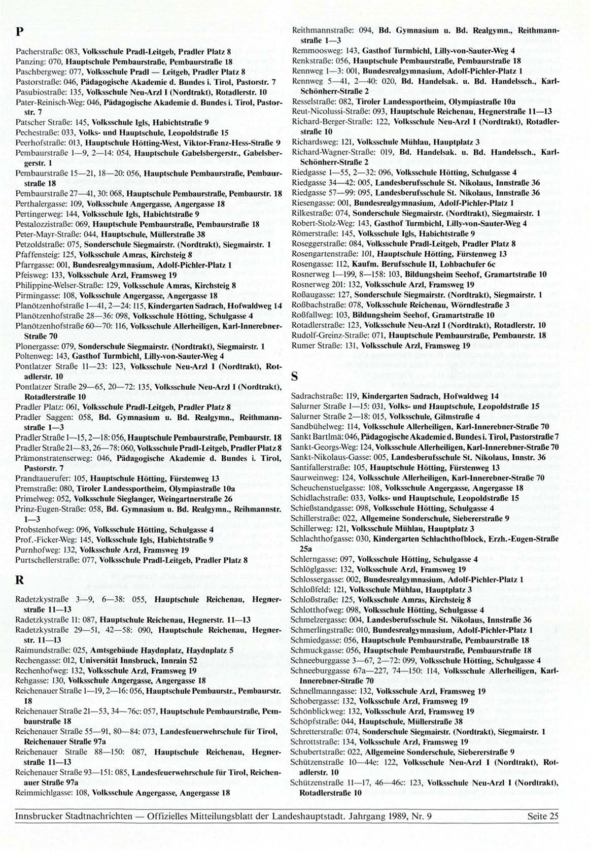 Innsbrucker Stadtnachrichten — Offizielles Mitteilungsblatt der Landeshauptstadt. Jahrgang 1989, Nr. 9