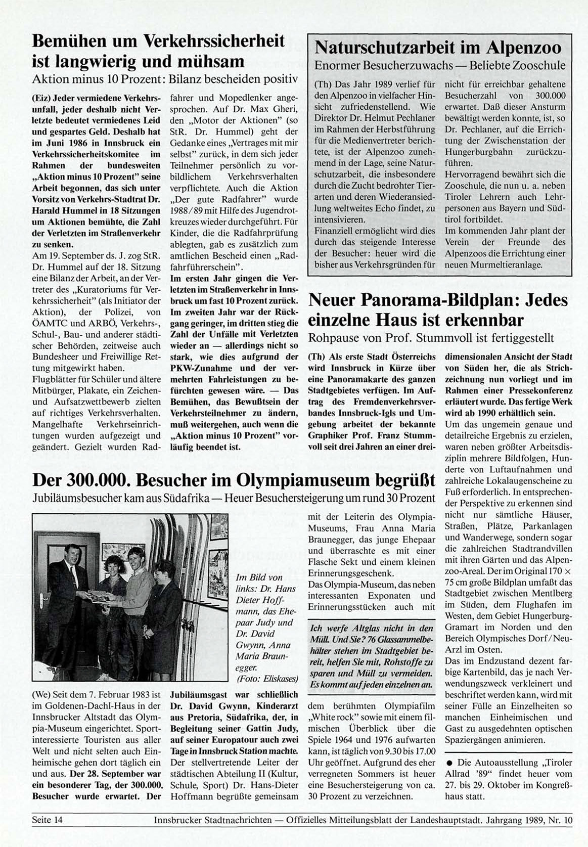 Innsbrucker Stadtnachrichten — Offizielles Mitteilungsblatt der Landeshauptstadt. Jahrgang 1989, Nr. 10