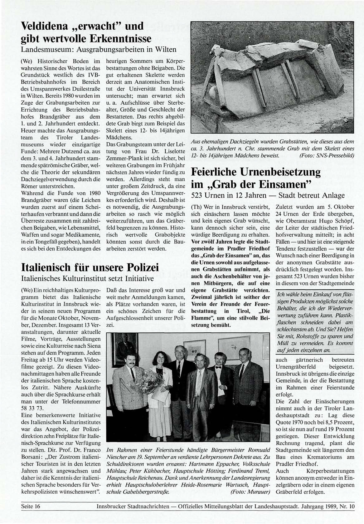 Innsbrucker Stadtnachrichten — Offizielles Mitteilungsblatt der Landeshauptstadt. Jahrgang 1989, Nr. 10