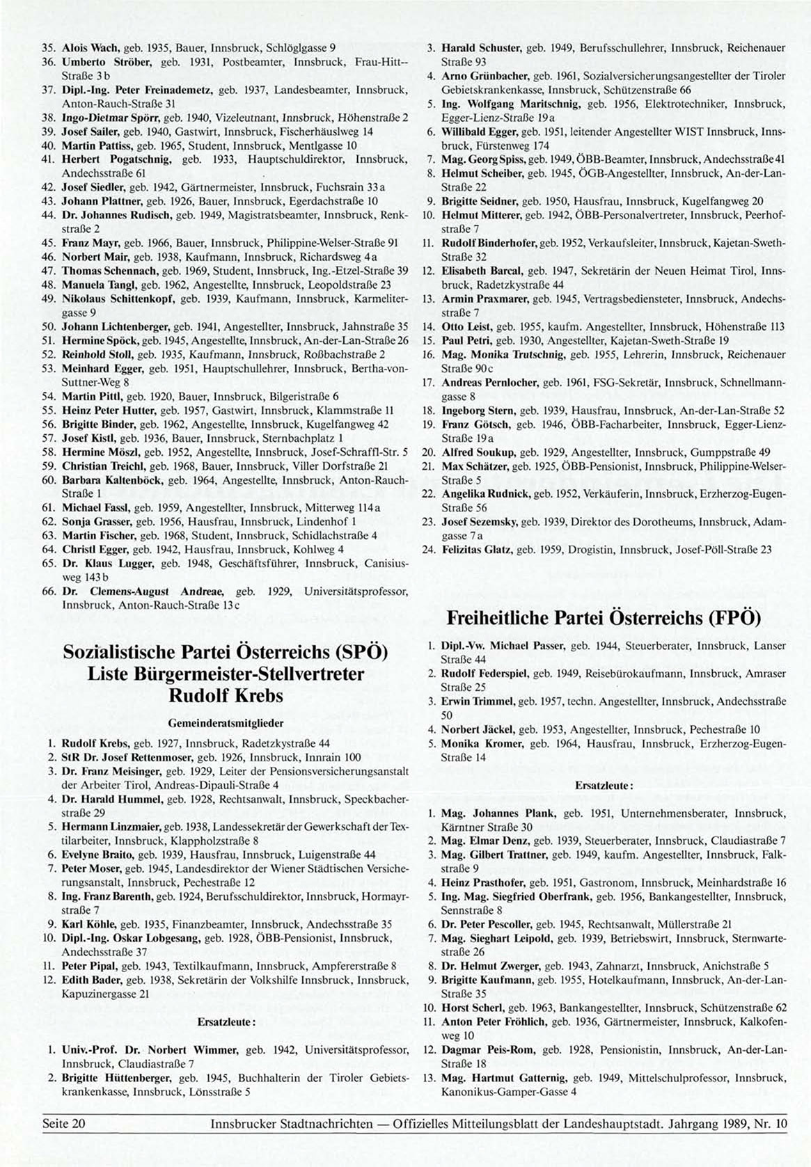 17. Andreas Pernlocher, geb. 1961, FSG-Sekretär, Innsbruck, Schnellmann18. Ingeborg Stern, geb. 1939, Hausfrau, Innsbruck, An-der-Lan-Straße 52