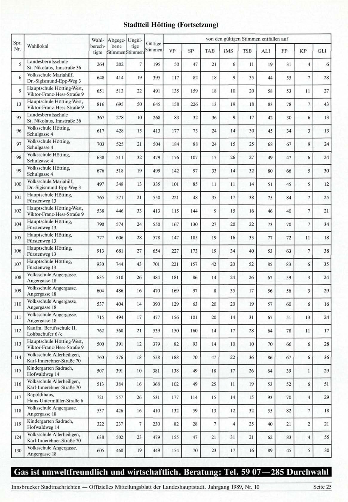 Innsbrucker Stadtnachrichten — Offizielles Mitteilungsblatt der Landeshauptstadt. Jahrgang 1989, Nr. 10