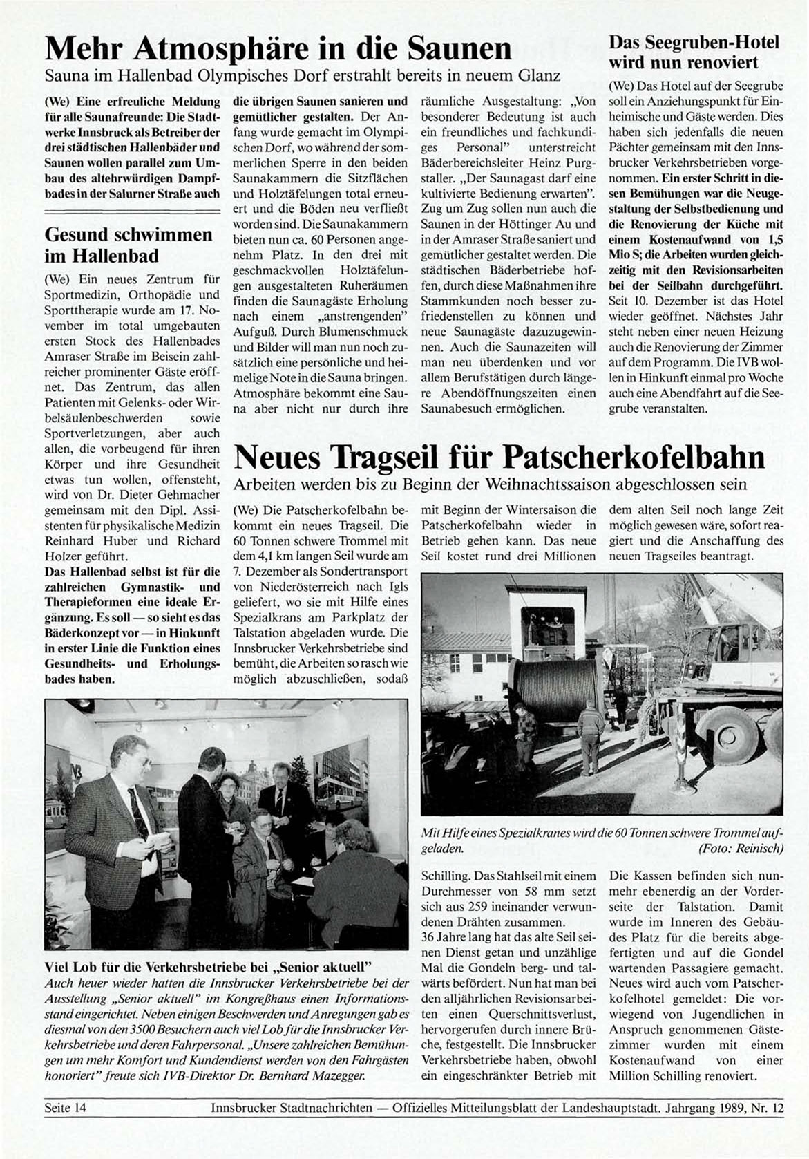 Innsbrucker Stadtnachrichten — Offizielles Mitteilungsblatt der Landeshauptstadt. Jahrgang 1989, Nr. 12