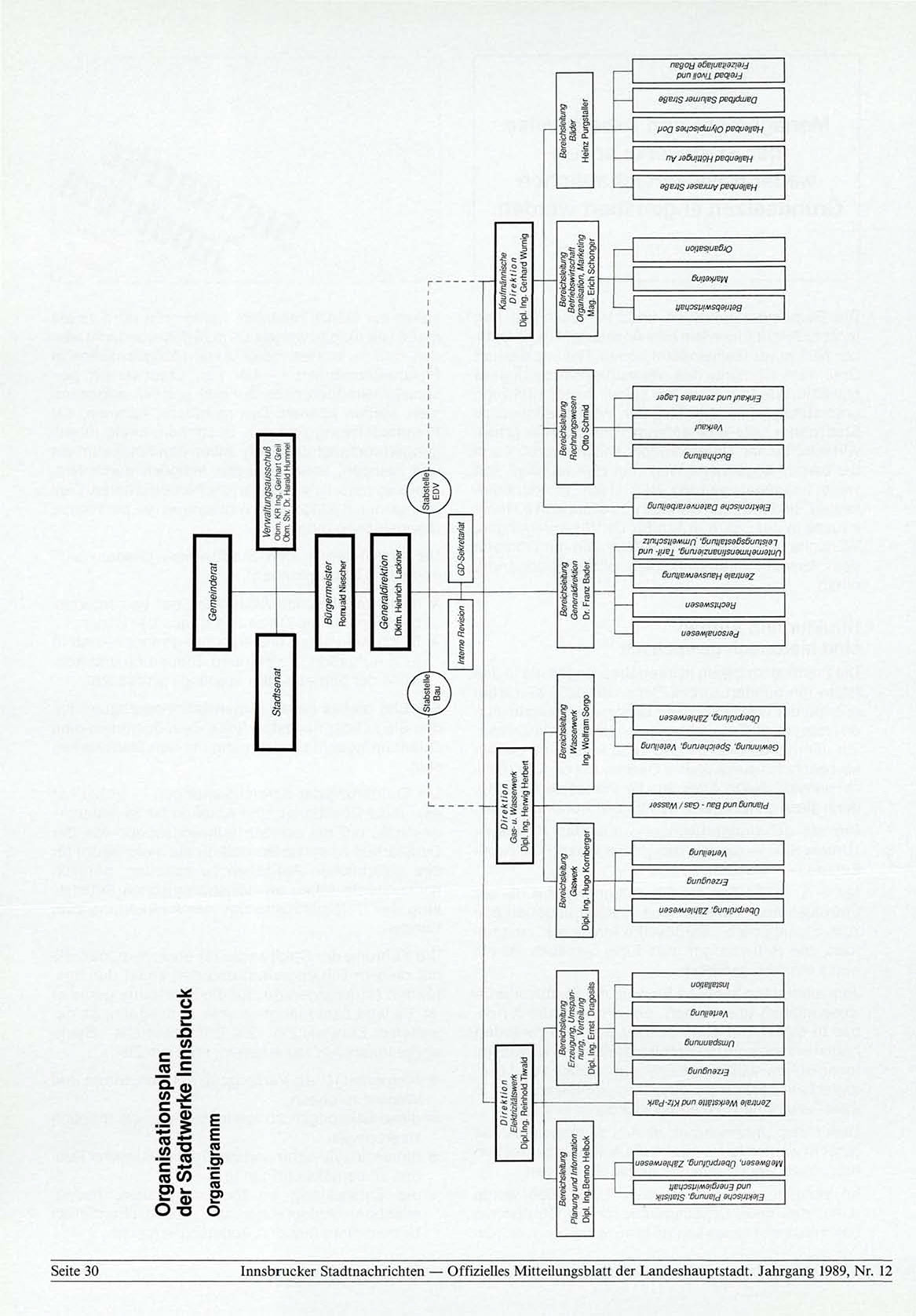 Innsbrucker Stadtnachrichten — Offizielles Mitteilungsblatt der Landeshauptstadt. Jahrgang 1989, Nr. 12
