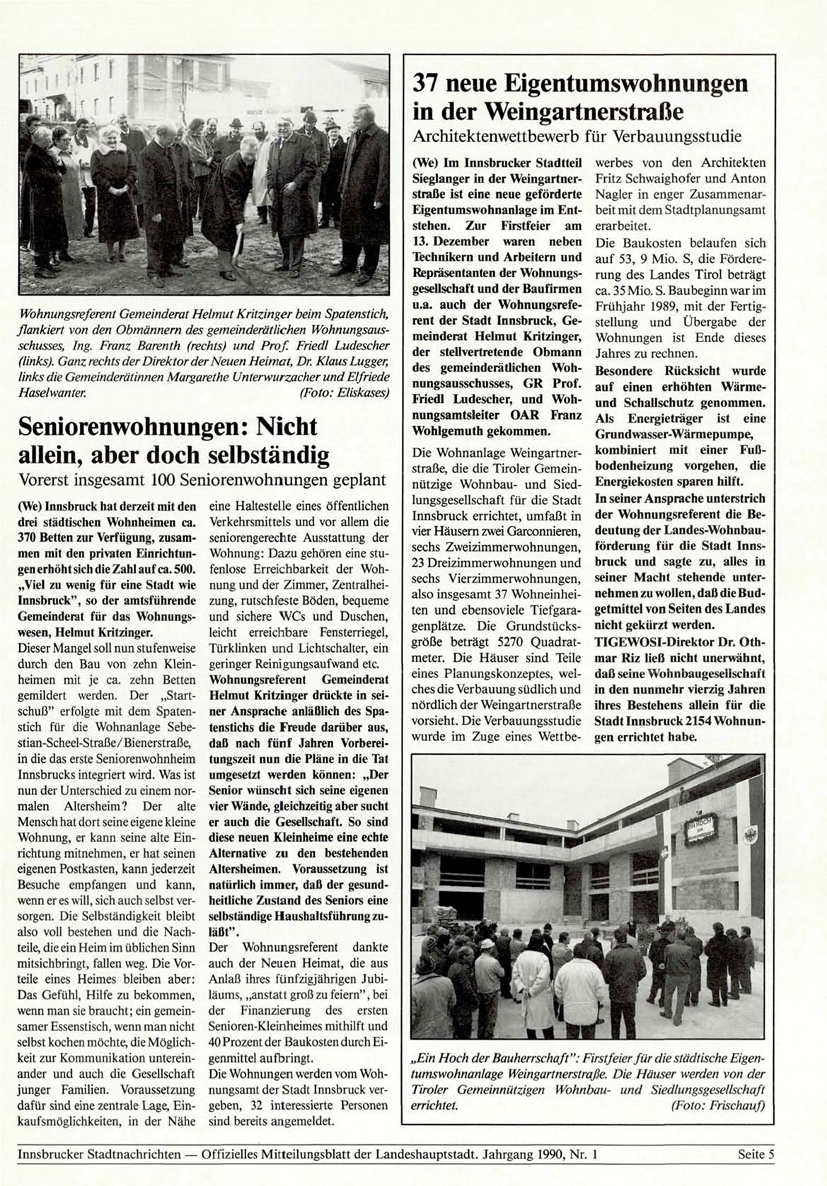 Innsbrucker Stadtnachrichten — Offizielles Mitteilungsblatt der Landeshauptstadt. Jahrgang 1990, Nr. 1
