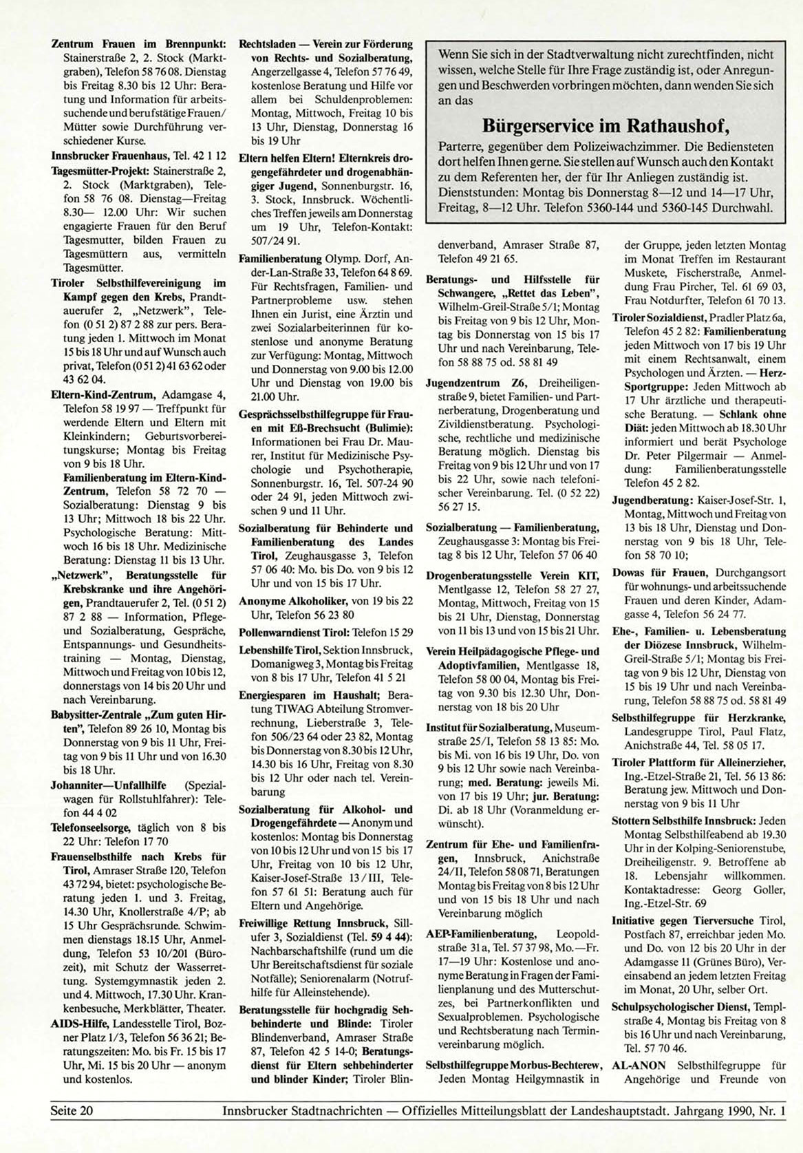 Innsbrucker Stadtnachrichten — Offizielles Mitteilungsblatt der Landeshauptstadt. Jahrgang 1990, Nr. 1