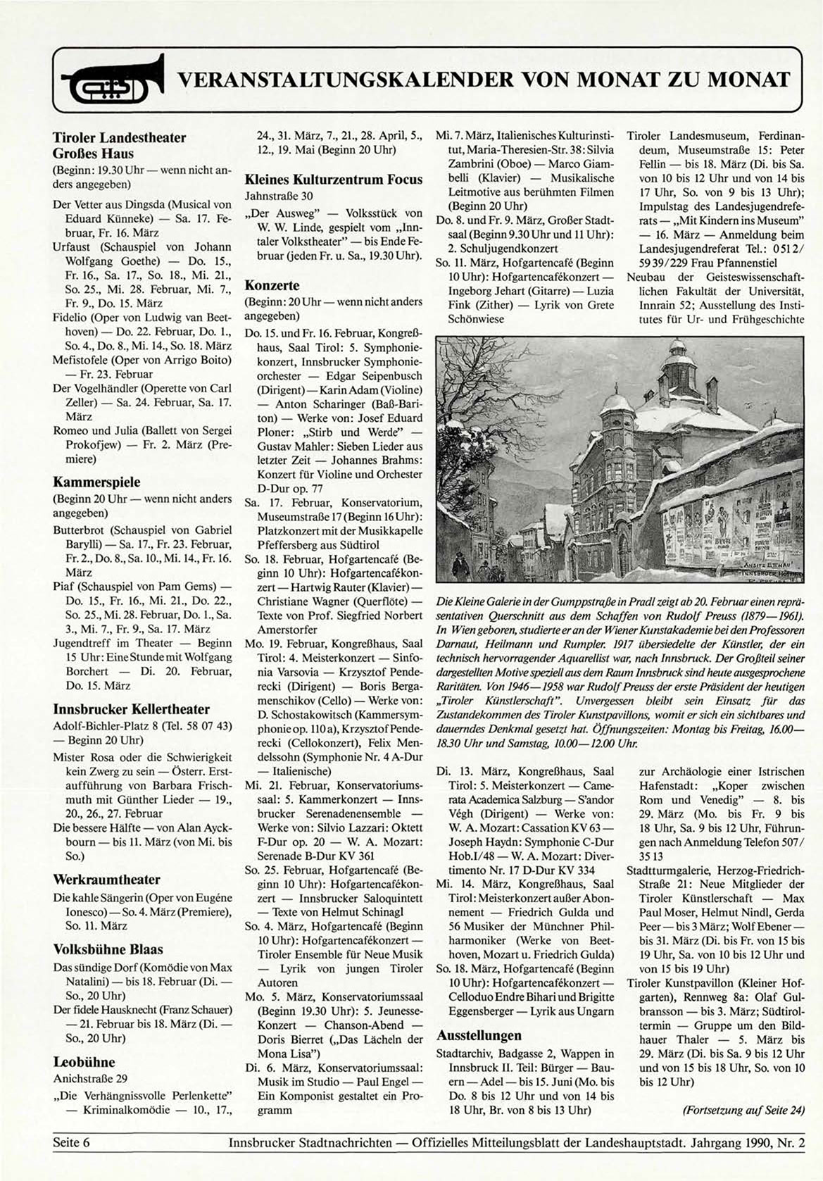 Innsbrucker Stadtnachrichten — Offizielles Mitteilungsblatt der Landeshauptstadt. Jahrgang 1990, Nr. 2