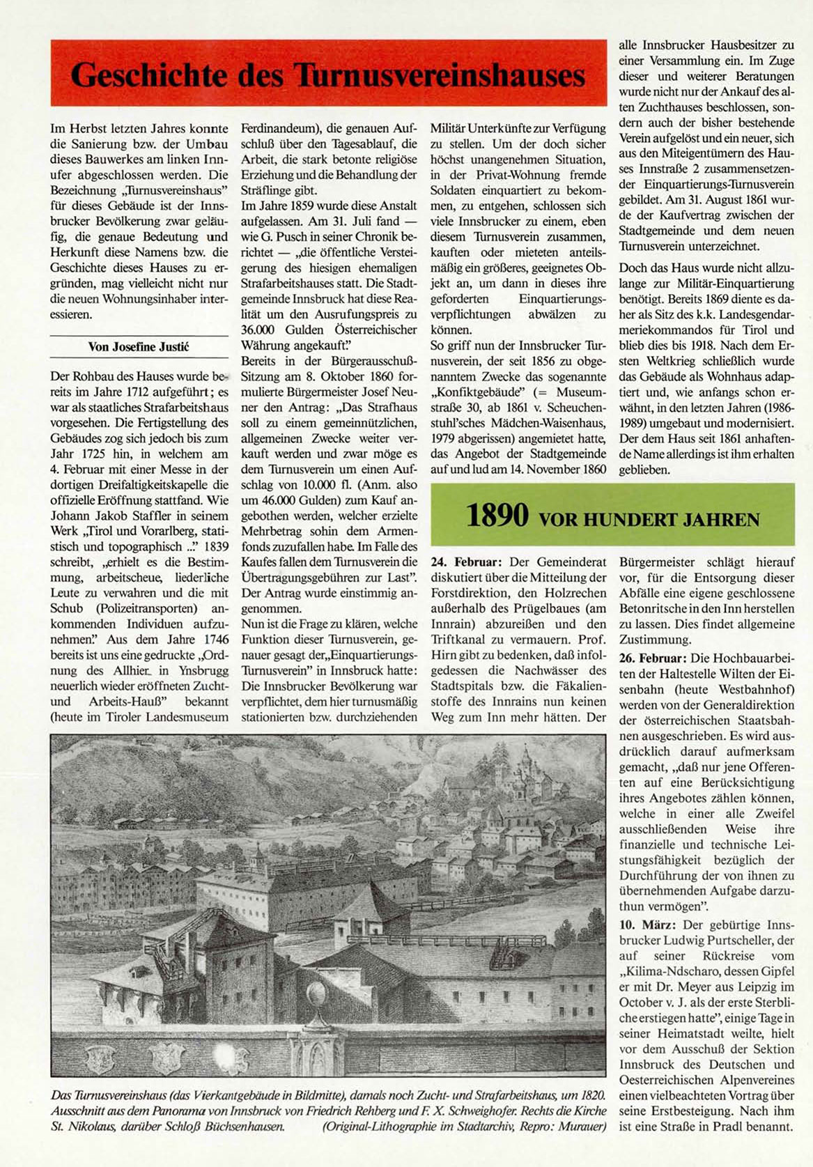 So griff nun der Innsbrucker Tur- blieb dies bis 1918. Nach dem Ernusverein, der seit 1856 zu obge- sten Weltkrieg schließlich wurde