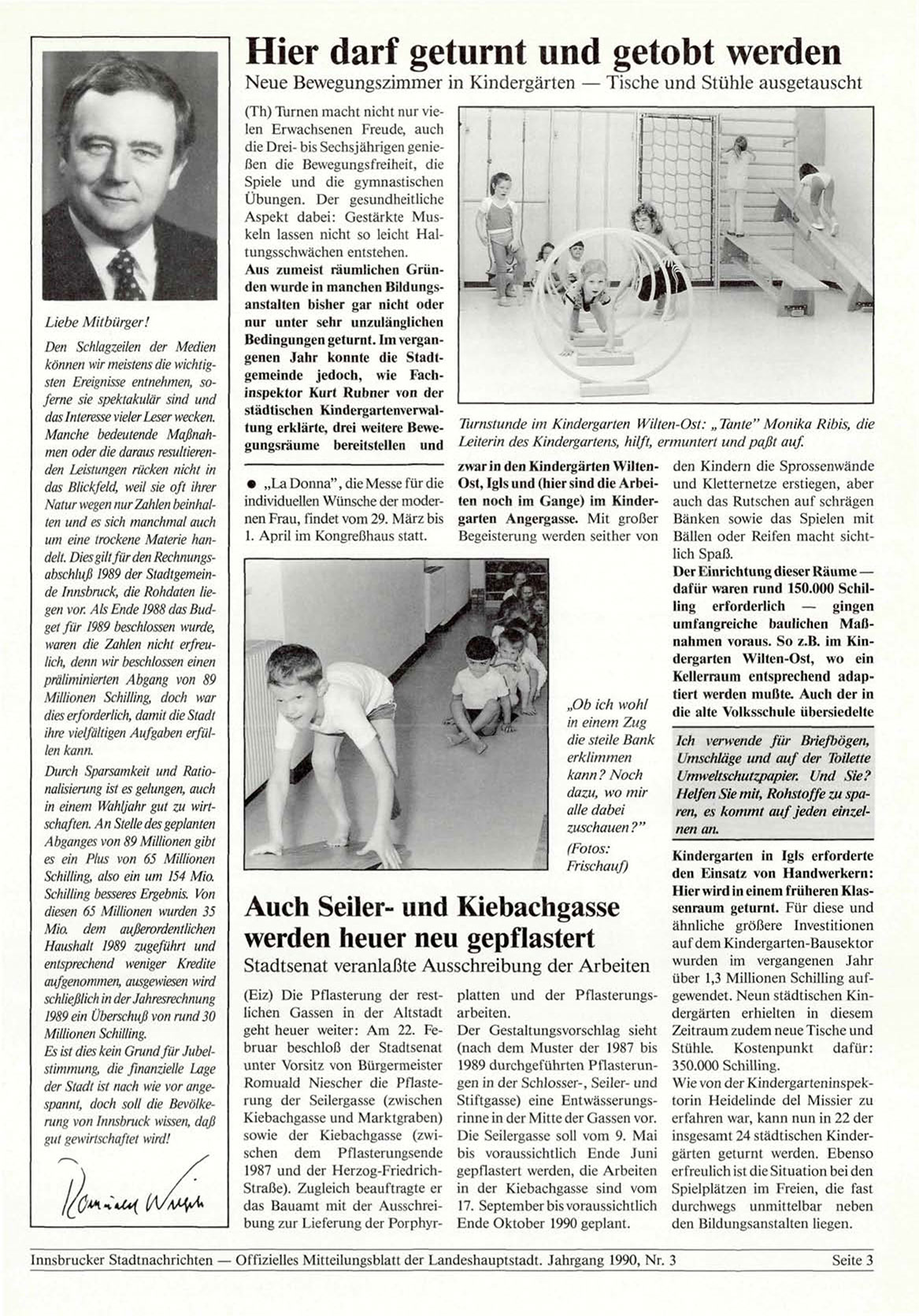 Innsbrucker Stadtnachrichten — Offizielles Mitteilungsblatt der Landeshauptstadt. Jahrgang 1990, Nr. 3