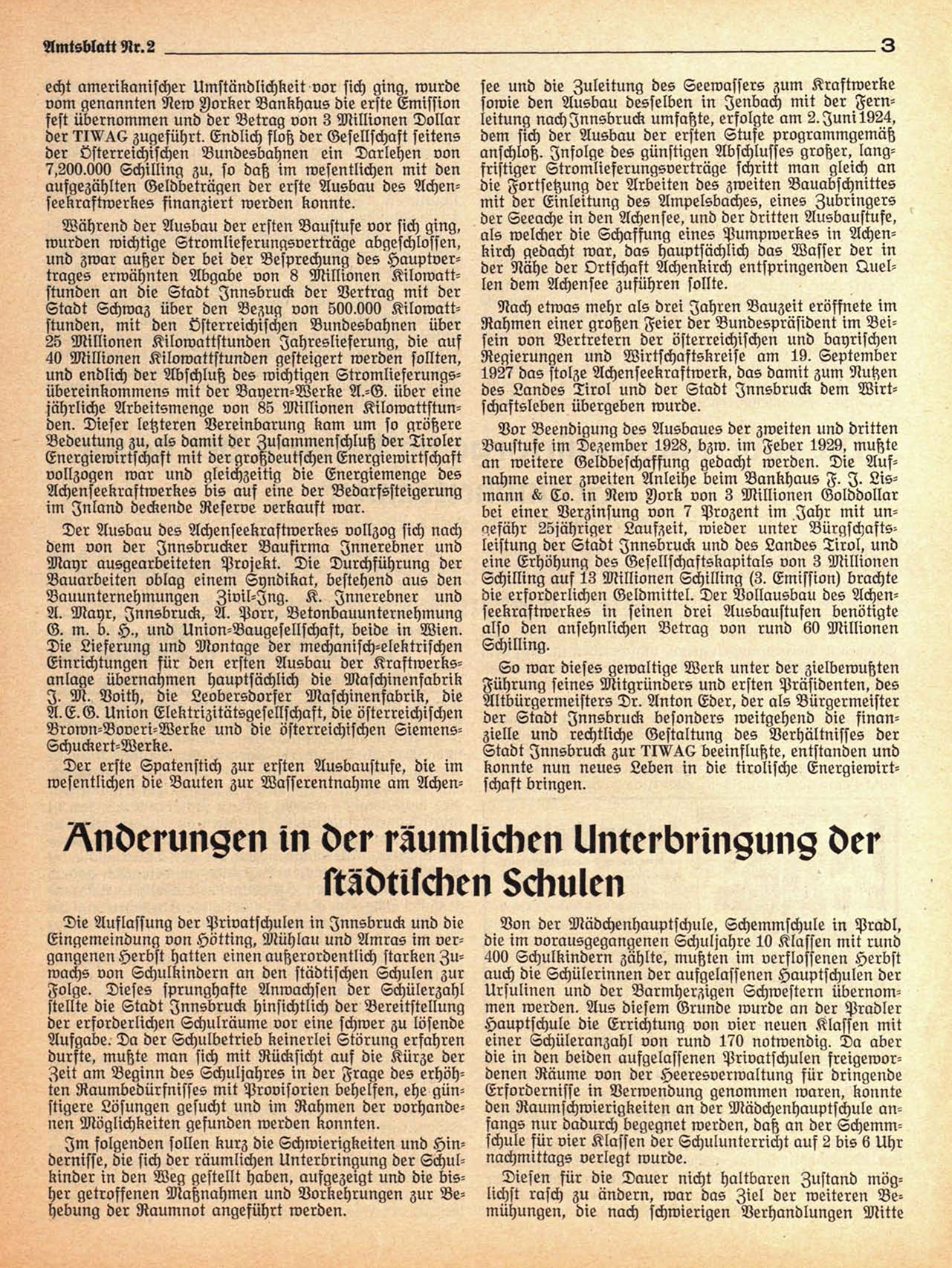 aufgezählten Geldbeträgen der erste Ausbau des Achenseekraftwerkes finanziert werden konnte.