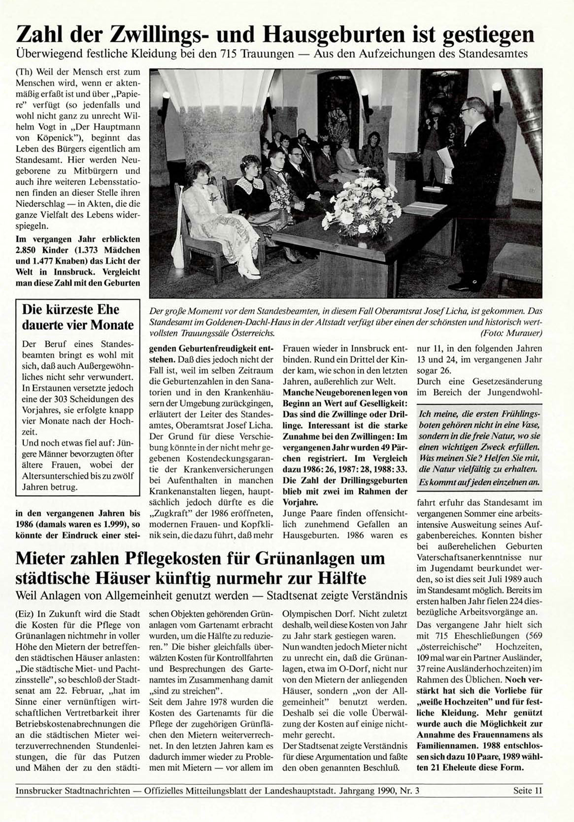 Innsbrucker Stadtnachrichten — Offizielles Mitteilungsblatt der Landeshauptstadt. Jahrgang 1990, Nr. 3