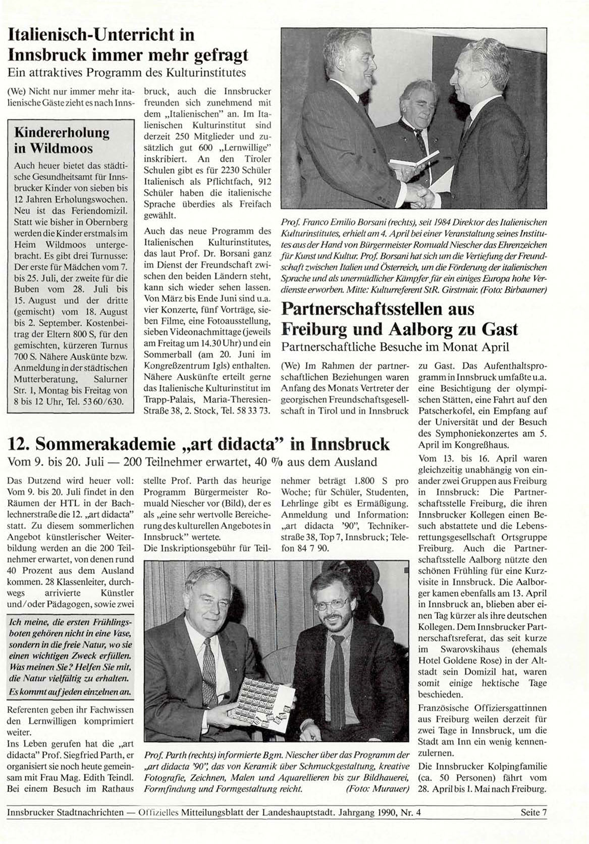 Innsbrucker Stadtnachrichten — Offizielles Mitteilungsblatt der Landeshauptstadt. Jahrgang 1990, Nr. 4
