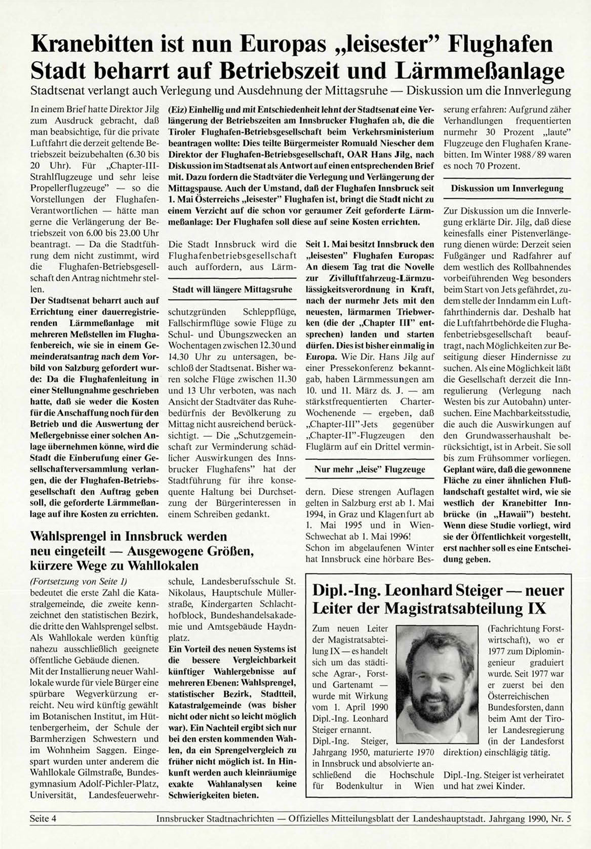 Innsbrucker Stadtnachrichten — Offizielles Mitteilungsblatt der Landeshauptstadt. Jahrgang 1990, Nr. 5