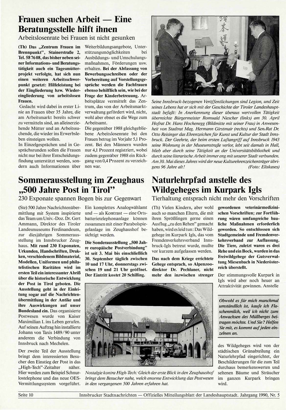 Innsbrucker Stadtnachrichten — Offizielles Mitteilungsblatt der Landeshauptstadt. Jahrgang 1990, Nr. 5