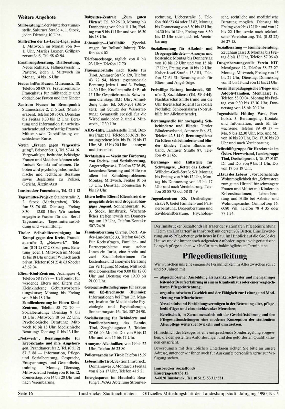 Innsbrucker Stadtnachrichten — Offizielles Mitteilungsblatt der Landeshauptstadt. Jahrgang 1990, Nr. 5