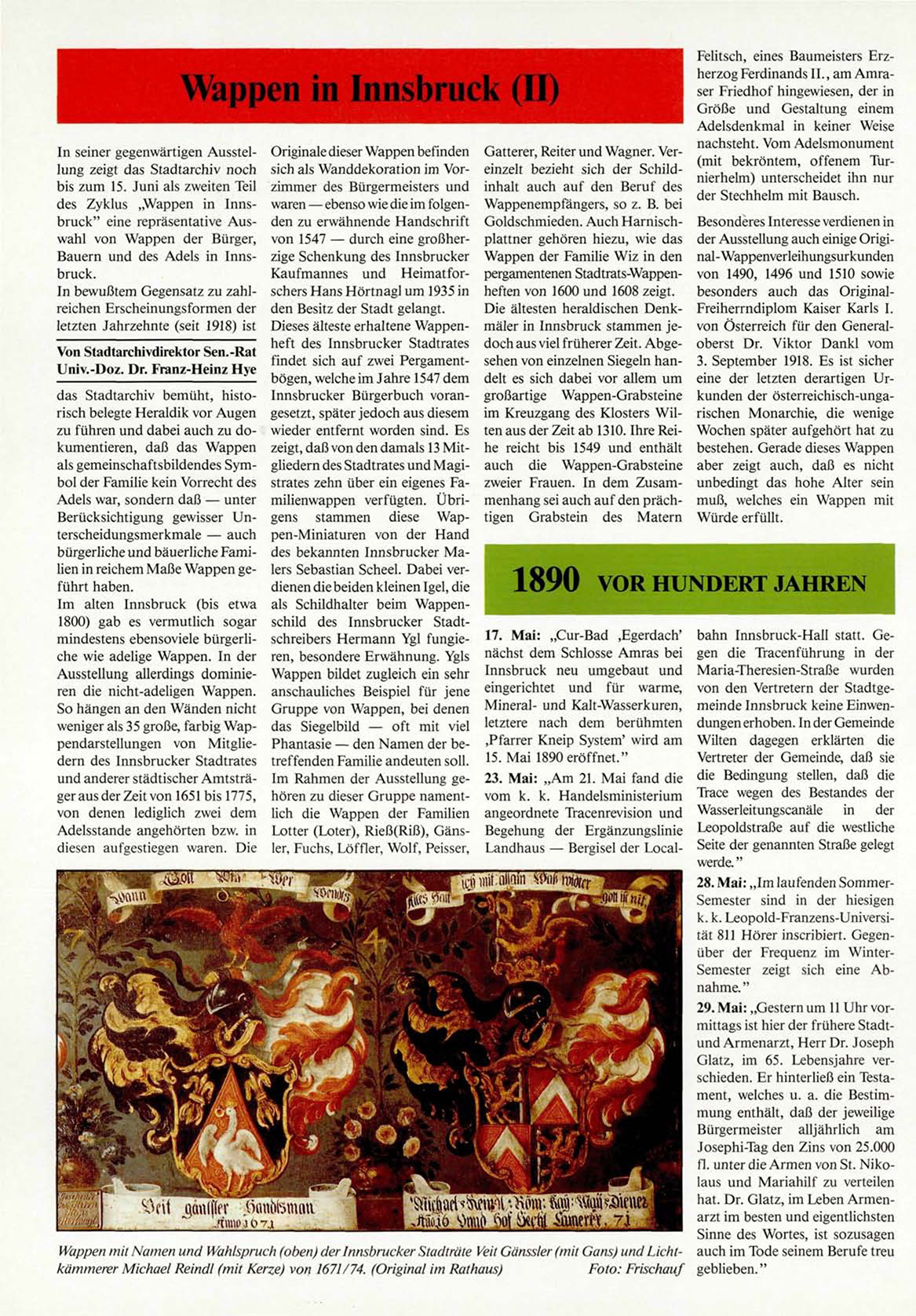 des Zyklus „Wappen in Innsbruck" eine repräsentative Auswahl von Wappen der Bürger,