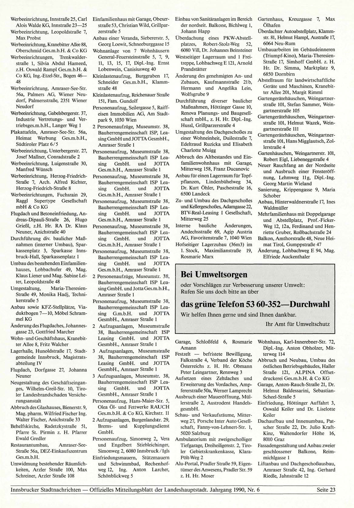 Innsbrucker Stadtnachrichten — Offizielles Mitteilungsblatt der Landeshauptstadt. Jahrgang 1990, Nr. 6