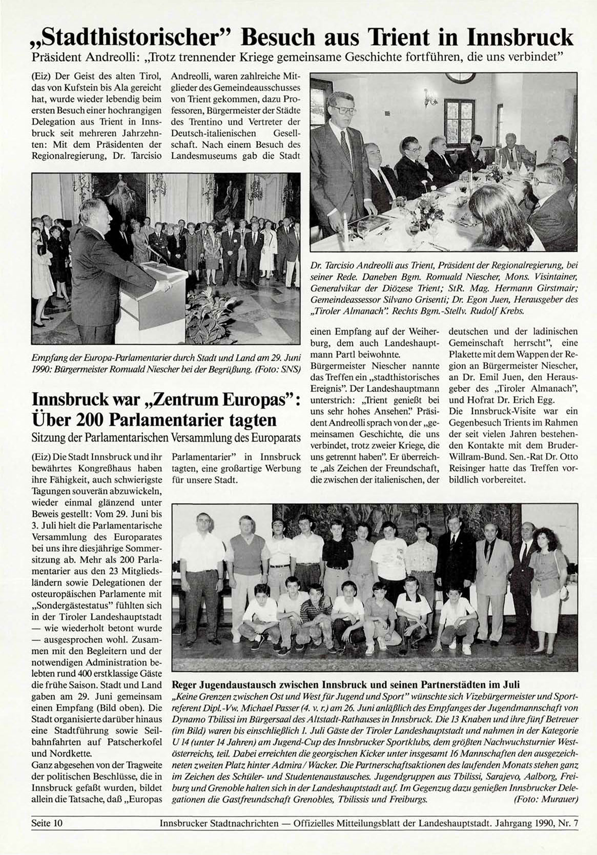 Innsbrucker Stadtnachrichten — Offizielles Mitteilungsblatt der Landeshauptstadt. Jahrgang 1990, Nr. 7