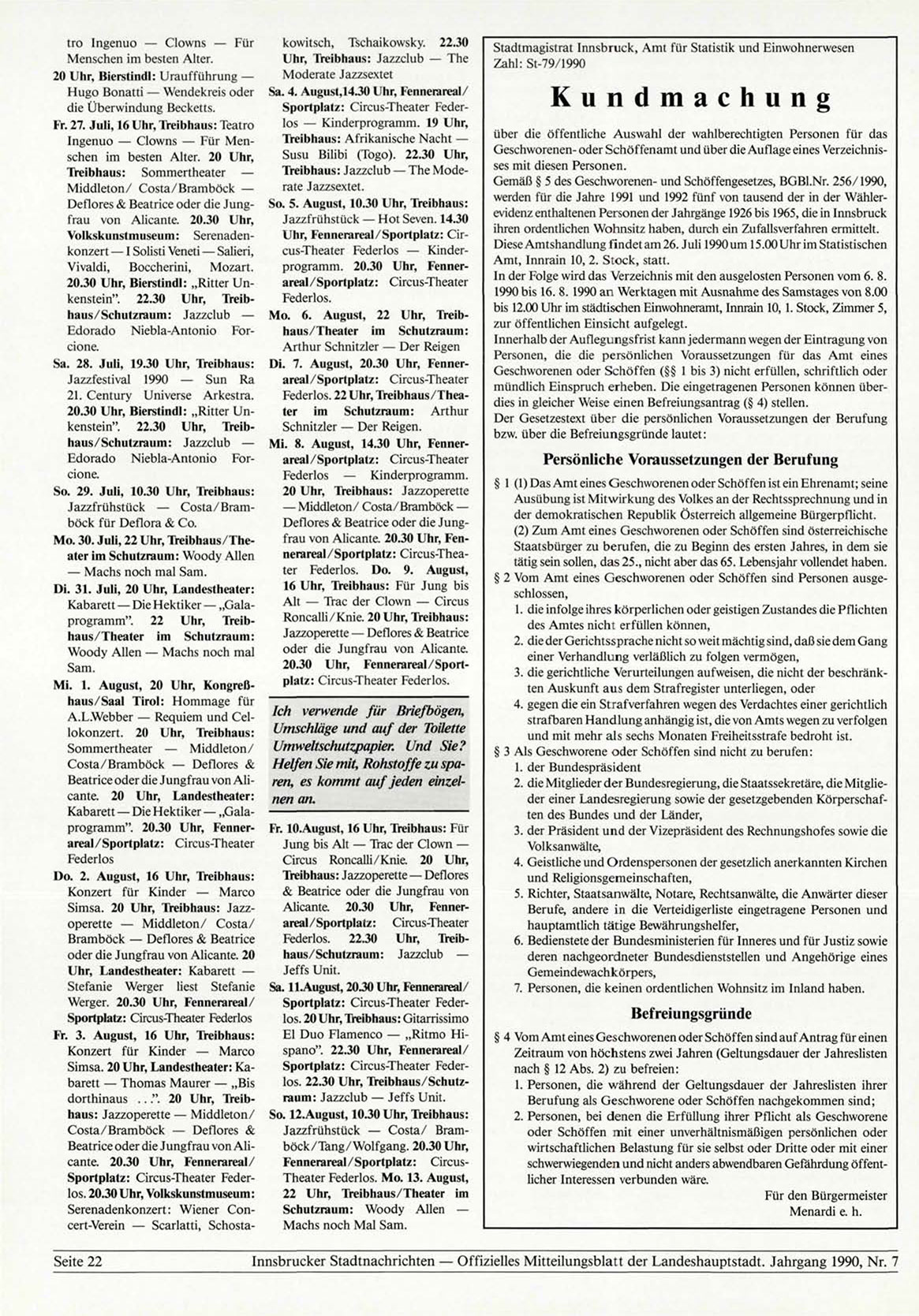 Innsbrucker Stadtnachrichten — Offizielles Mitteilungsblatt der Landeshauptstadt. Jahrgang 1990, Nr. 7