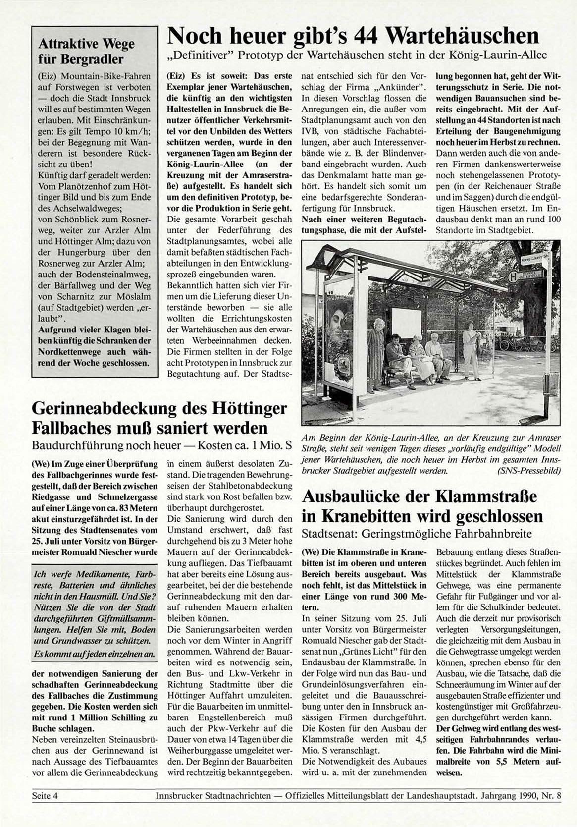 Innsbrucker Stadtnachrichten — Offizielles Mitteilungsblatt der Landeshauptstadt. Jahrgang 1990, Nr. 8