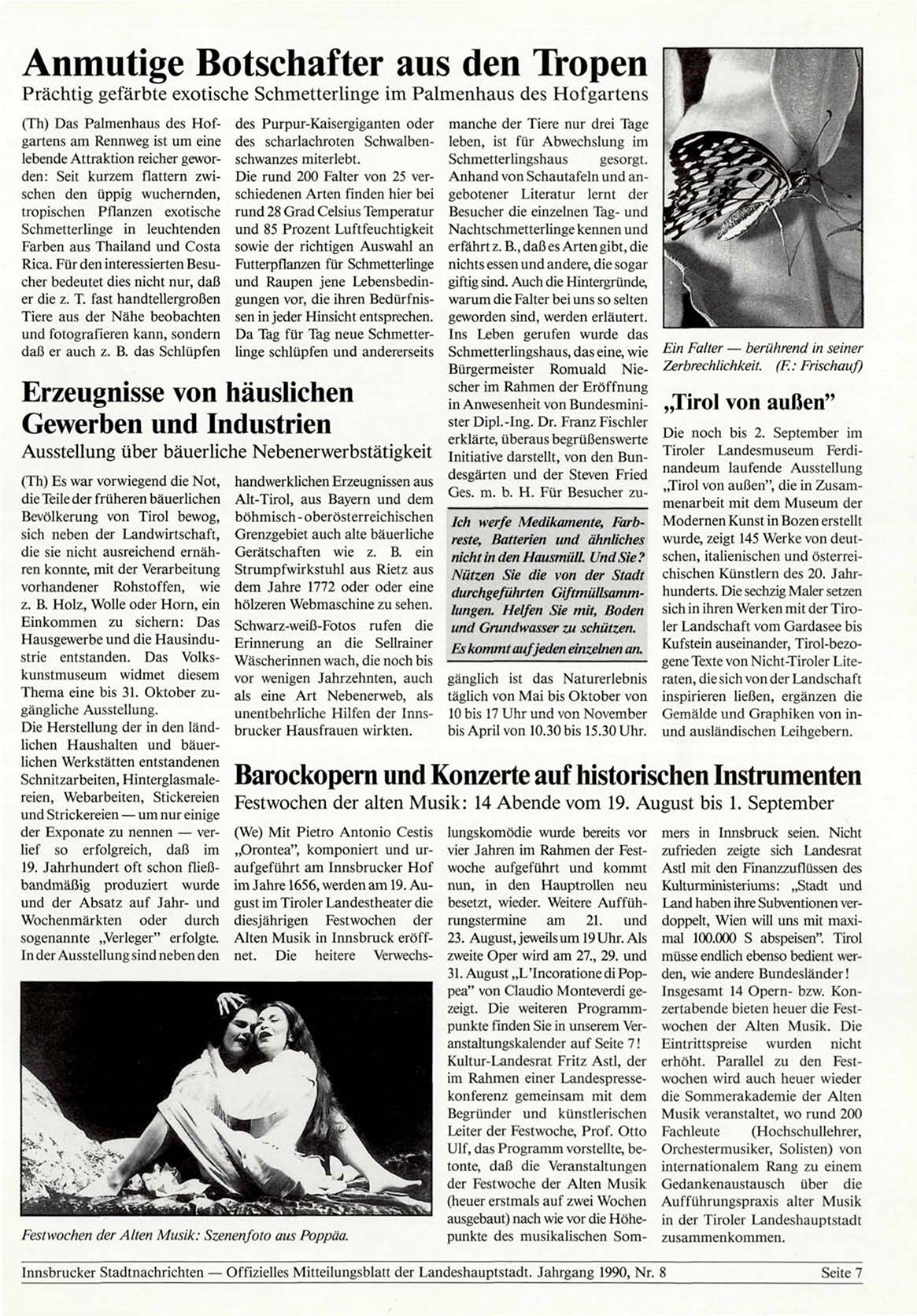 Innsbrucker Stadtnachrichten — Offizielles Mitteilungsblatt der Landeshauptstadt. Jahrgang 1990, Nr. 8