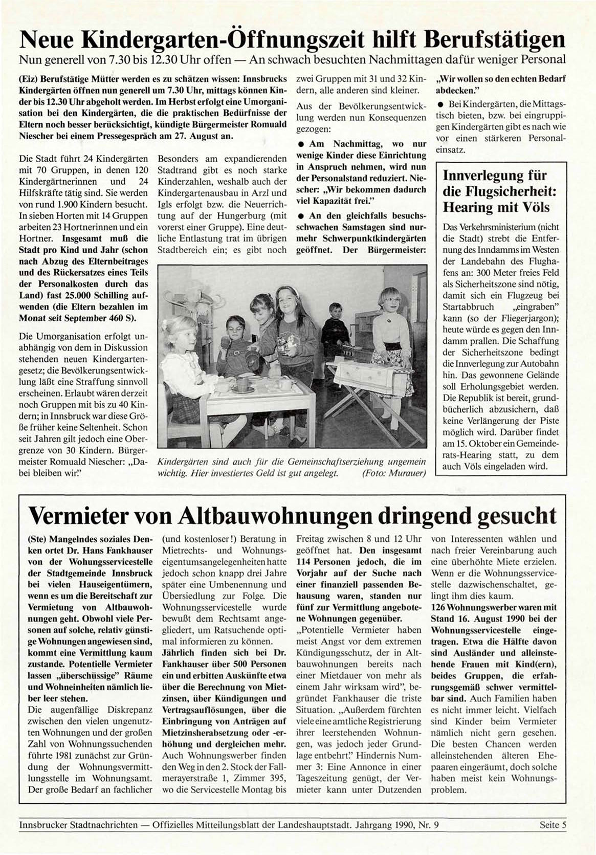 Innsbrucker Stadtnachrichten — Offizielles Mitteilungsblatt der Landeshauptstadt. Jahrgang 1990, Nr. 9