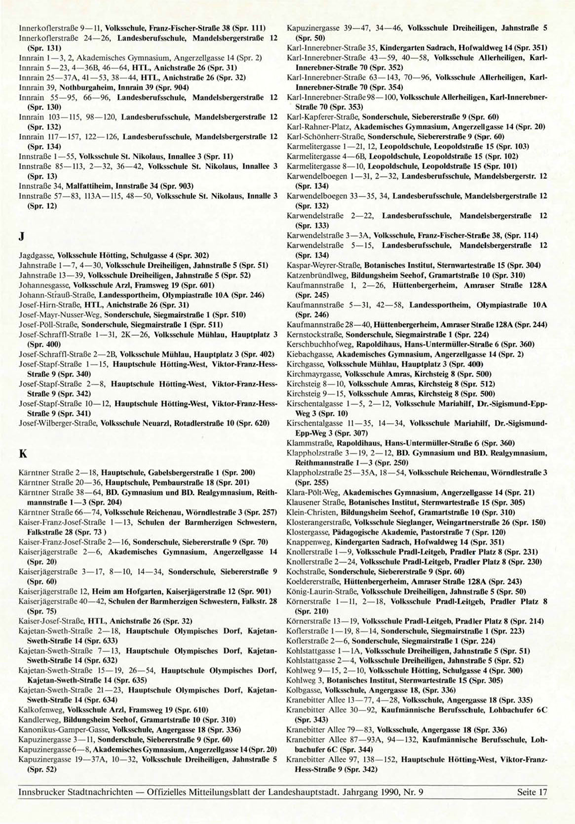 Innsbrucker Stadtnachrichten — Offizielles Mitteilungsblatt der Landeshauptstadt. Jahrgang 1990, Nr. 9