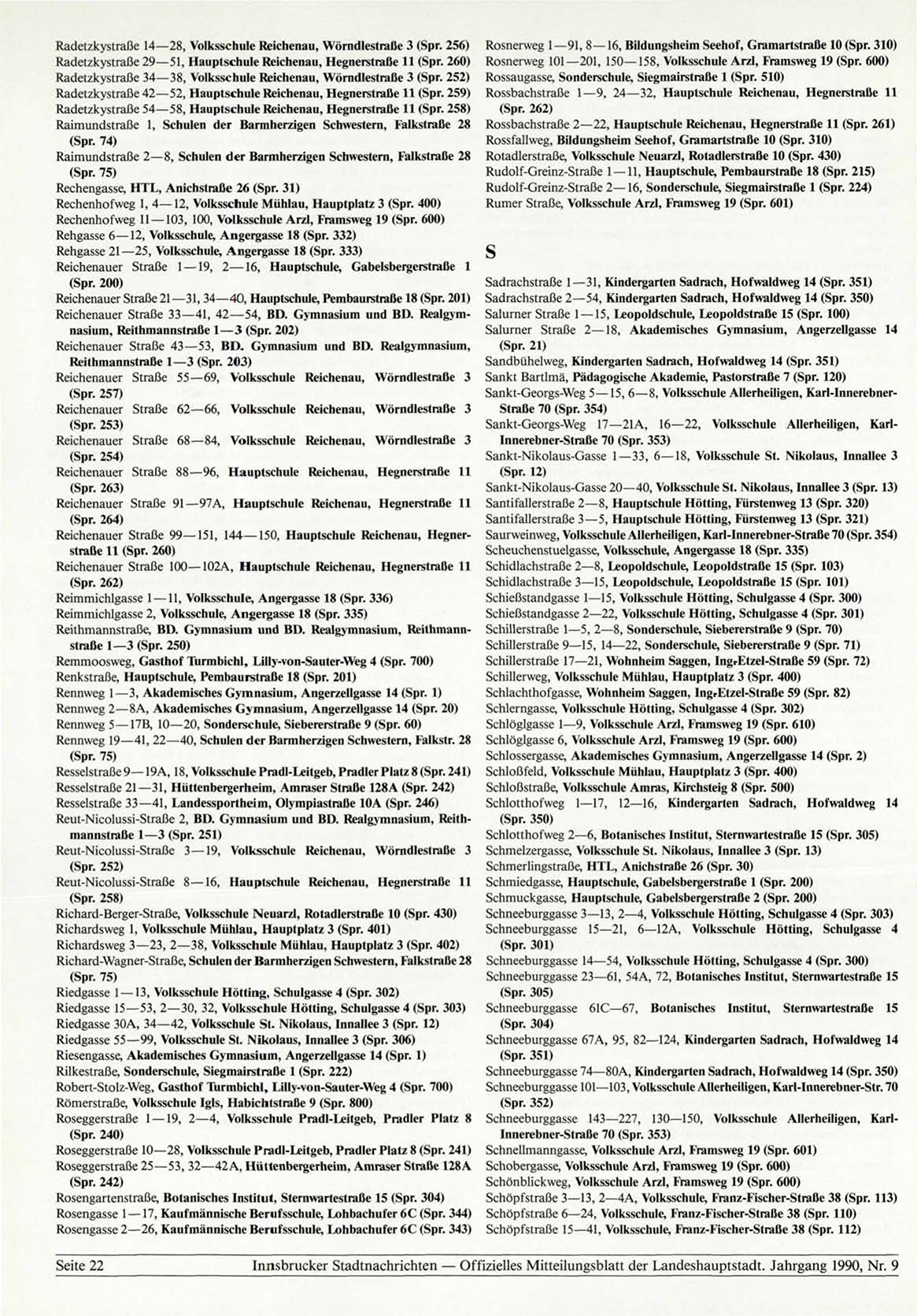 Innsbrucker Stadtnachrichten — Offizielles Mitteilungsblatt der Landeshauptstadt. Jahrgang 1990, Nr. 9