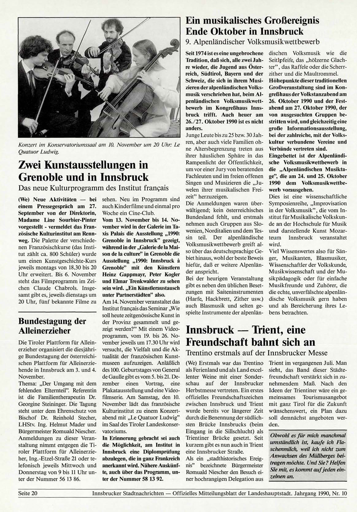 Innsbrucker Stadtnachrichten — Offizielles Mitteilungsblatt der Landeshauptstadt. Jahrgang 1990, Nr. 10
