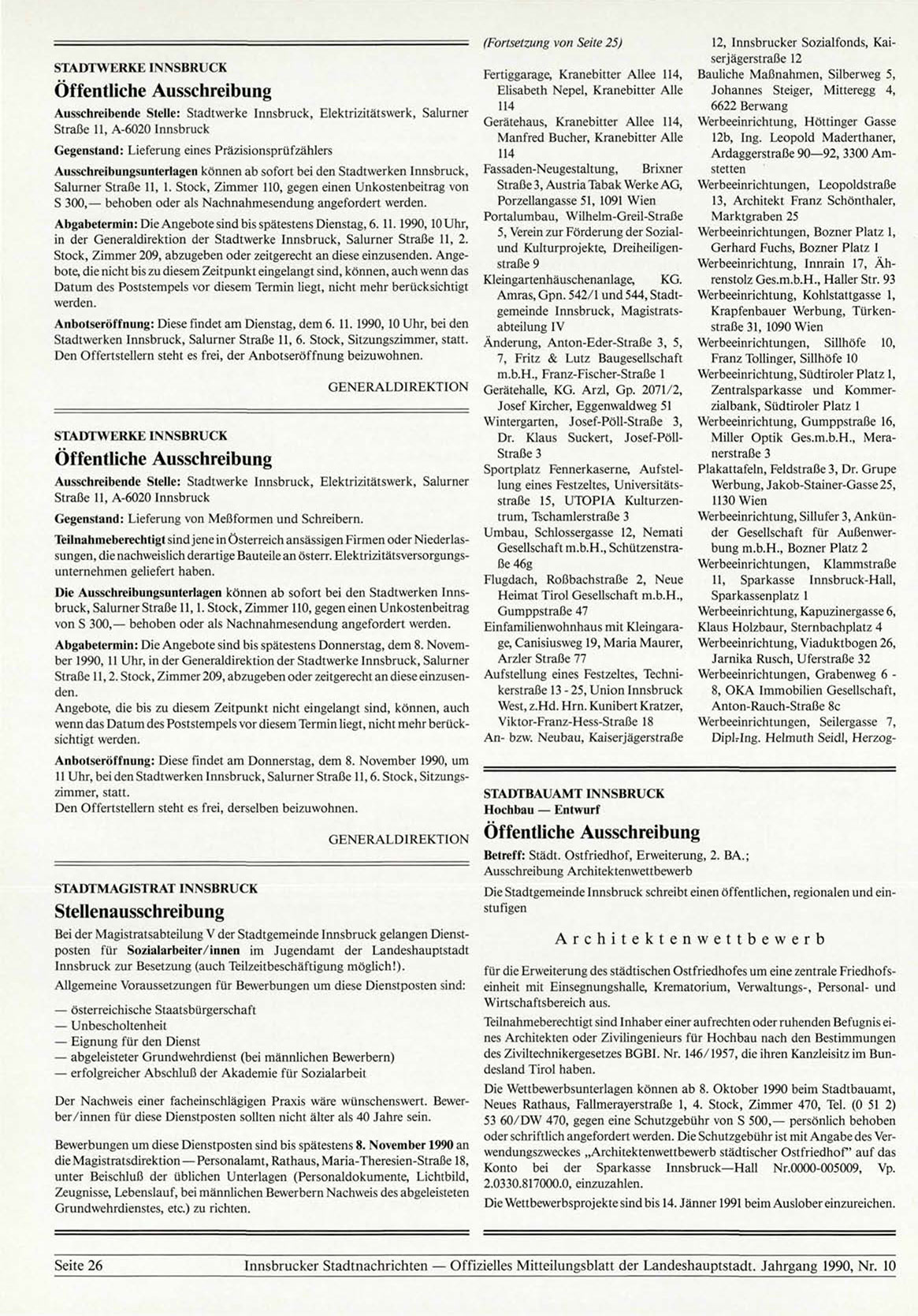 Innsbrucker Stadtnachrichten — Offizielles Mitteilungsblatt der Landeshauptstadt. Jahrgang 1990, Nr. 10